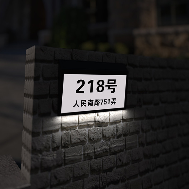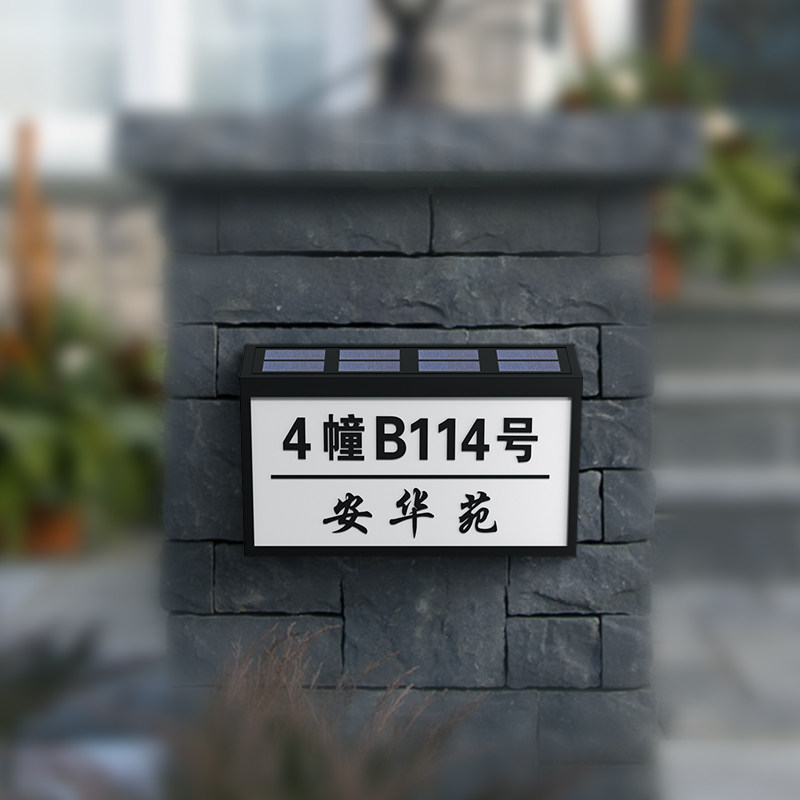 别墅庭院太阳能发光门牌灯室外防雨自动充电门派定制小区号码标牌