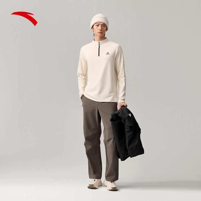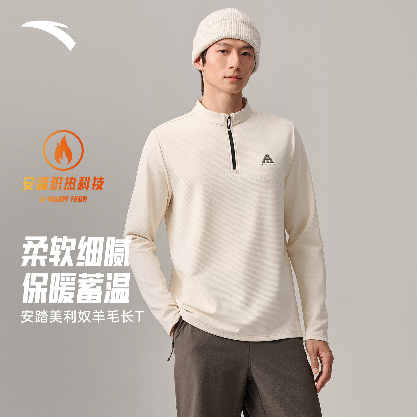 安踏羊毛T丨美利奴羊毛长袖t恤男秋冬新款半开襟户外透气徒步上衣