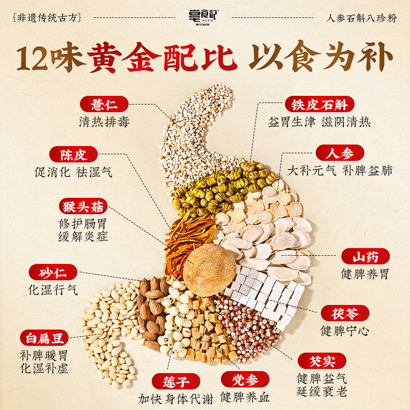 古方八珍粉正宗铁棍山药铁皮石斛猴头菇祛湿健脾养胃官方旗舰店