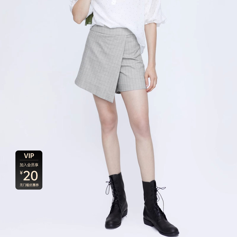 【sdeer奥莱】圣迪奥女装休闲简约撞色格纹拼接A字短裤S21260910