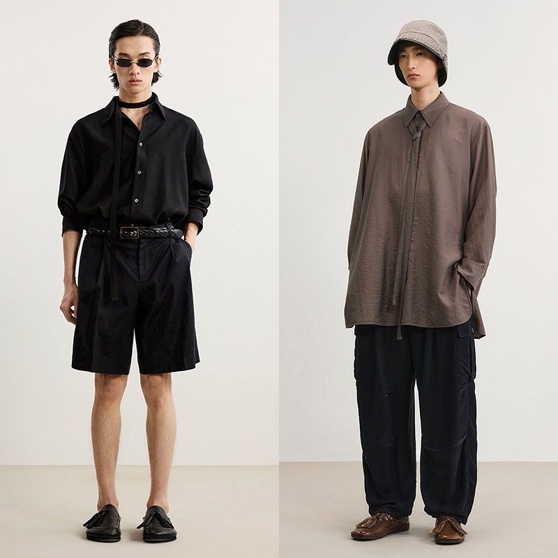 [莱赛尔]速写男装春秋新款男士长袖衬衫自带领带简约优雅通勤