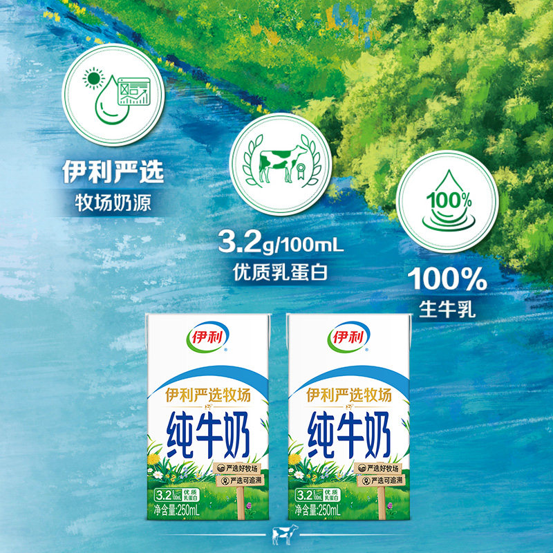伊利纯牛奶严选牧场24*250ml学生儿童营养早餐纯牛奶正品特价