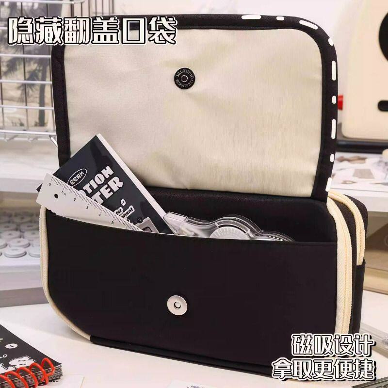 学霸笔袋大容量磨砂翻盖2026新款简约ins风初高中生多层帆布学生潮流文具袋收纳