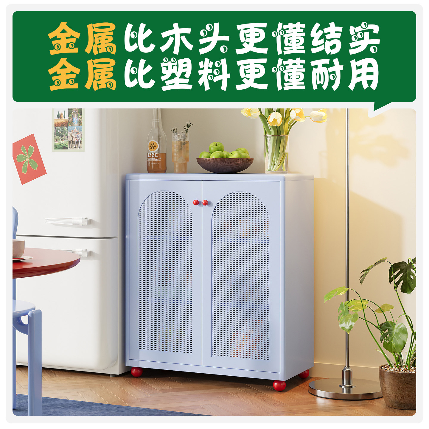 金属餐边柜2026新款适合客厅边柜咖啡柜钢制带门柜子储物柜墙边柜