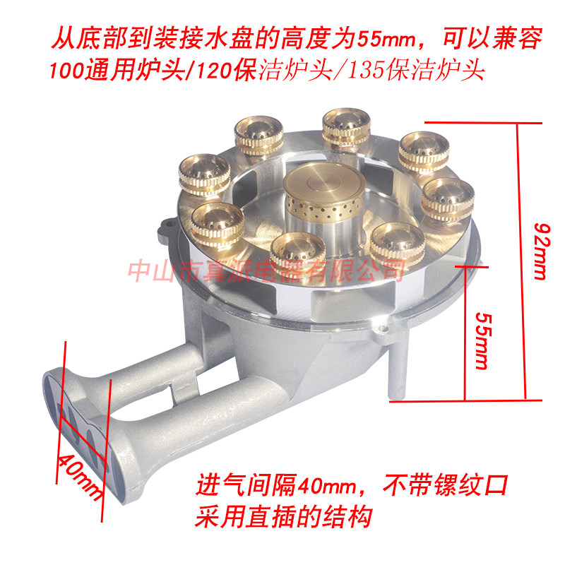 135mm连体炉头火盖总成套装一体化九头分火器可替换直插式通用款