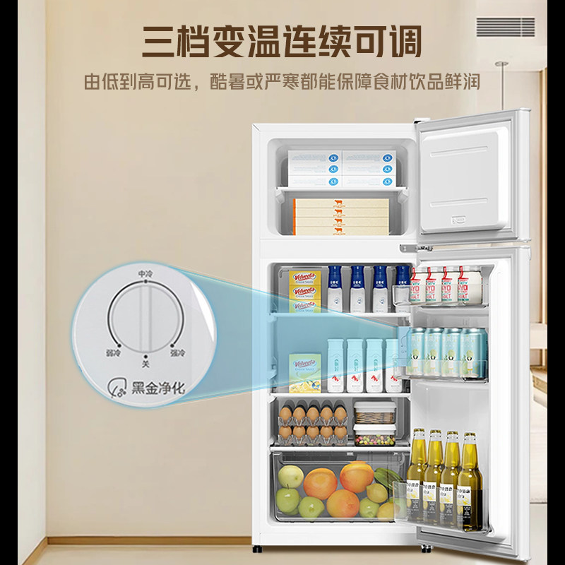 海尔小冰箱家用小型118升双开门迷你租房宿舍用单人冰箱冷藏冷冻