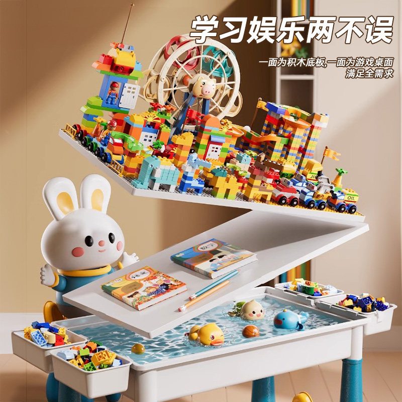积木桌子多功能儿童游戏桌大颗粒益智拼装玩具男女孩3岁宝宝6拼图