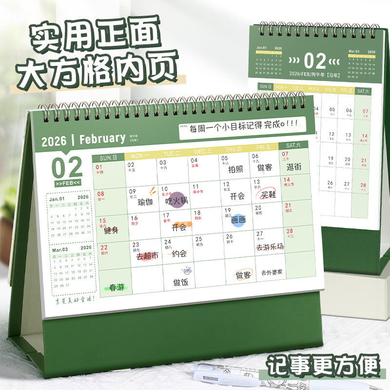 台历2026年新款创意简约办公桌面摆件月历办公室日程计划本高颜值年历马年工作打卡小日历创意大格子台式记事