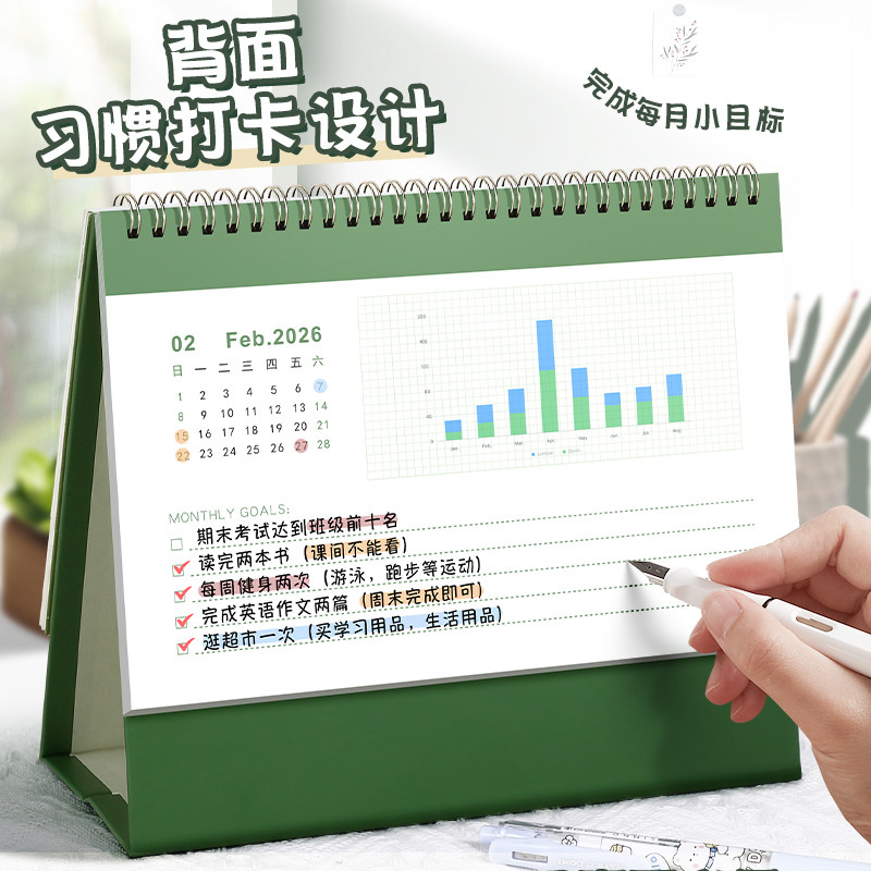 2026年台历新款办公室日历记事本工作月自律打卡每日计划本考研台式桌面摆件备忘录2025下半年到创意月历年历