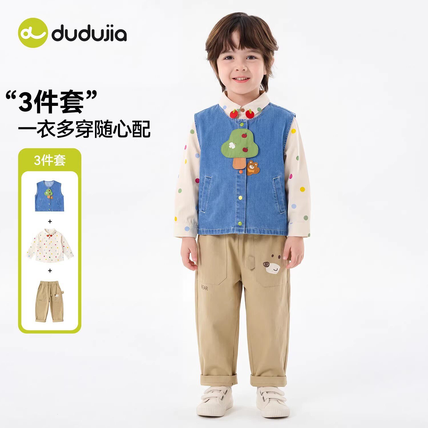 dudujia儿童套装男童背带裤宝宝童装女童裤子春秋婴童外套a类