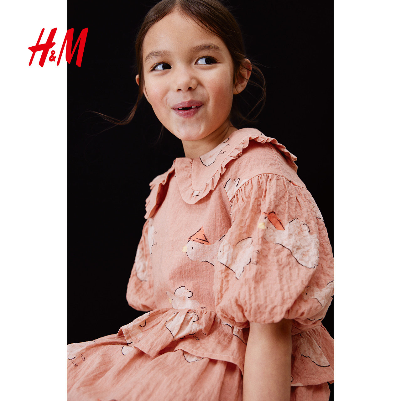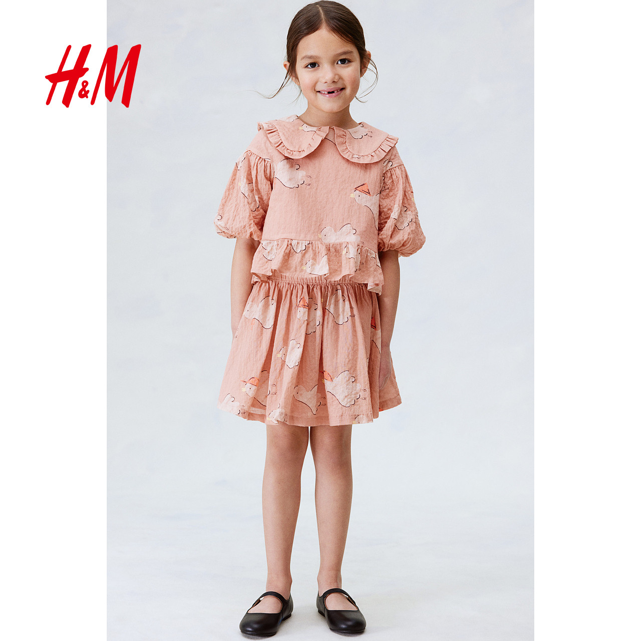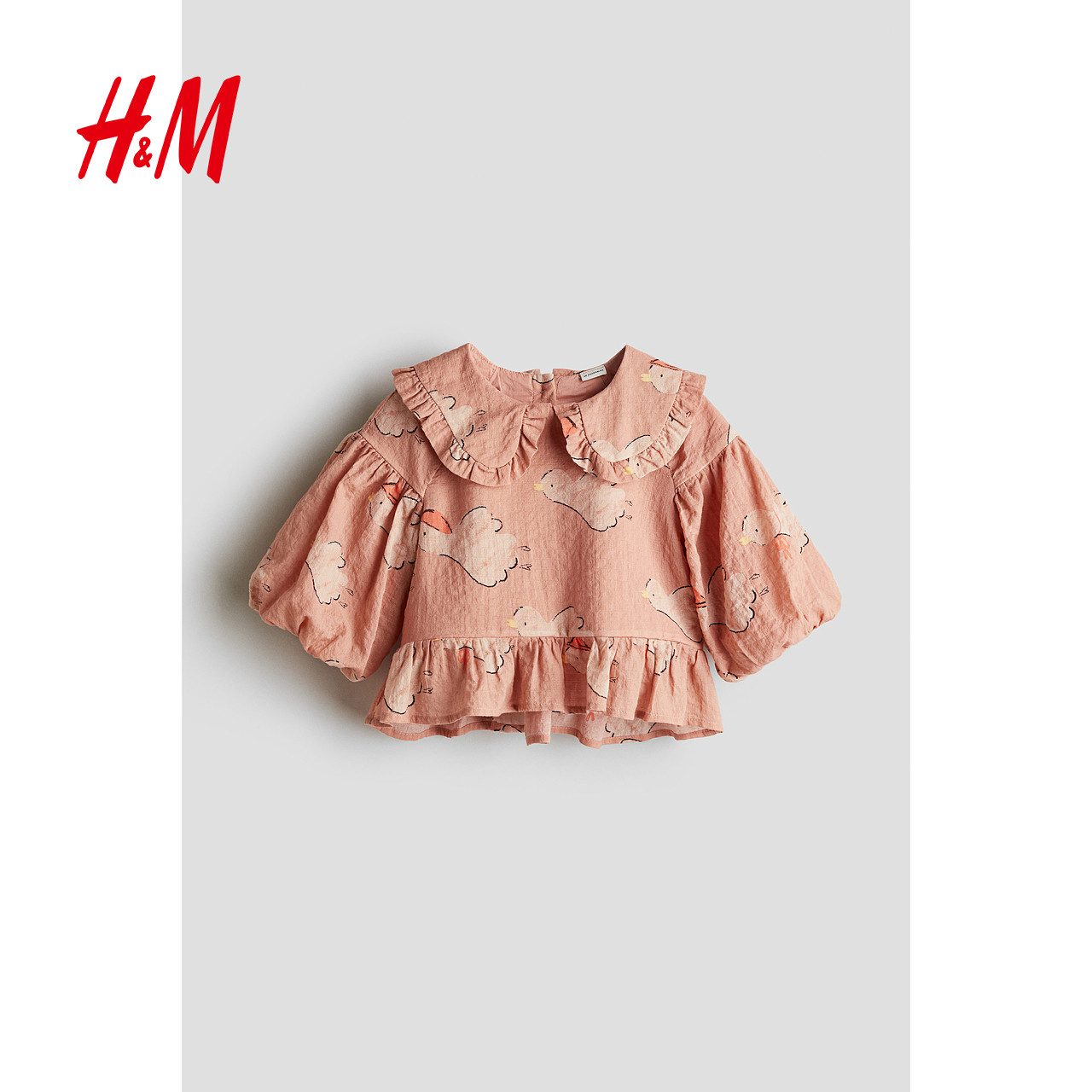 HM童装儿童女童衬衫新款可爱甜美蓬蓬袖泡泡纱中袖上衣1263182