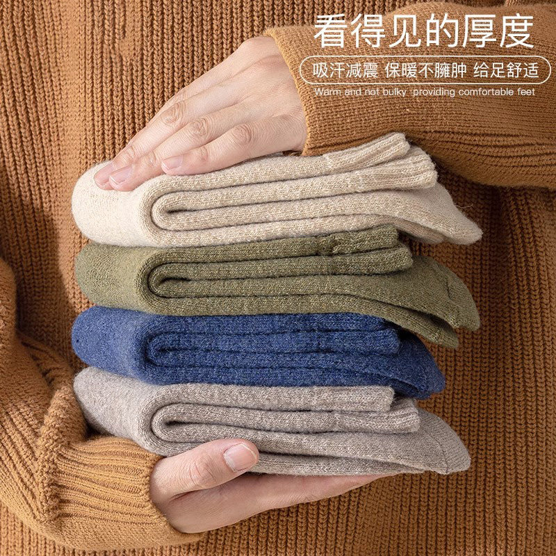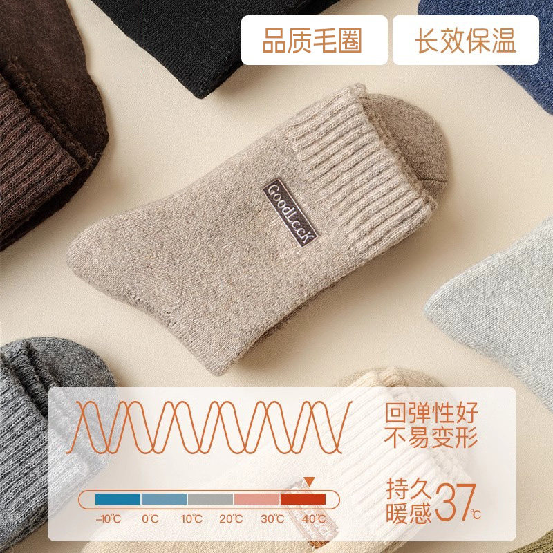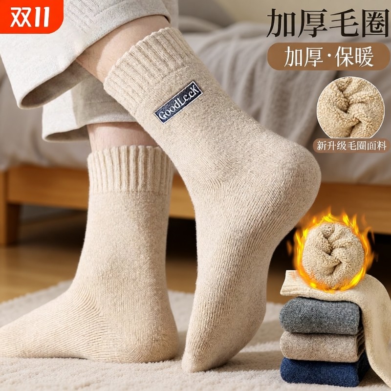 中筒袜子男士秋冬款毛圈袜加绒保暖诸暨毛巾袜防臭长筒袜羊毛耐磨