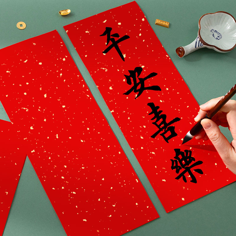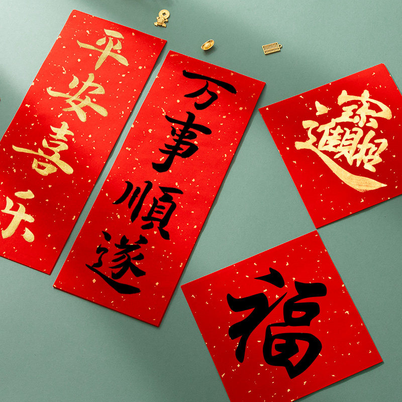 新款万年红小对联纸儿童自写春联纸四字挥春纸小号福字纸加厚空白红纸小张洒金宣纸手写毛笔书法作品专用门贴