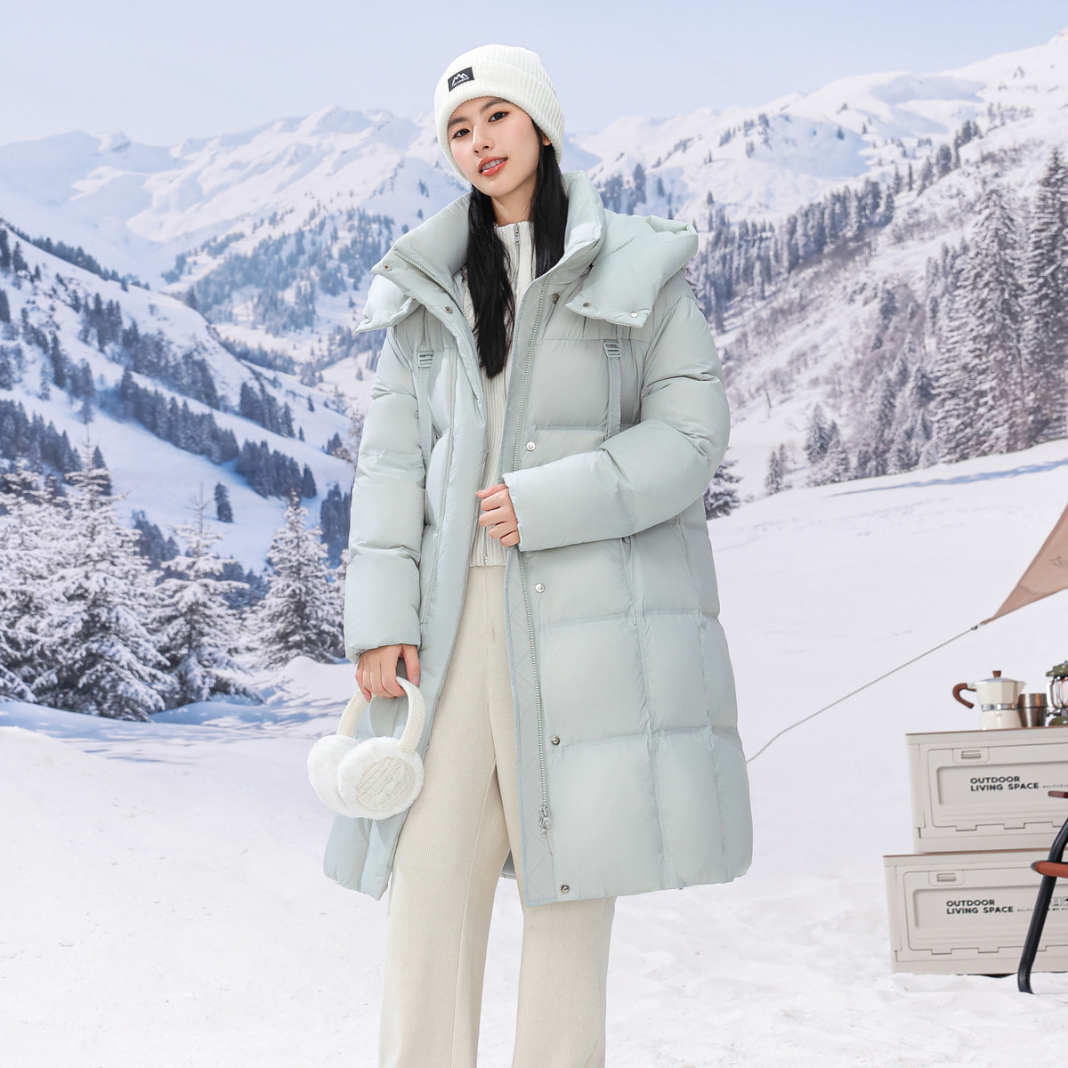 雪中飞2025冬新款女士中长款羽绒服可脱卸帽高充绒舒适纯色气质