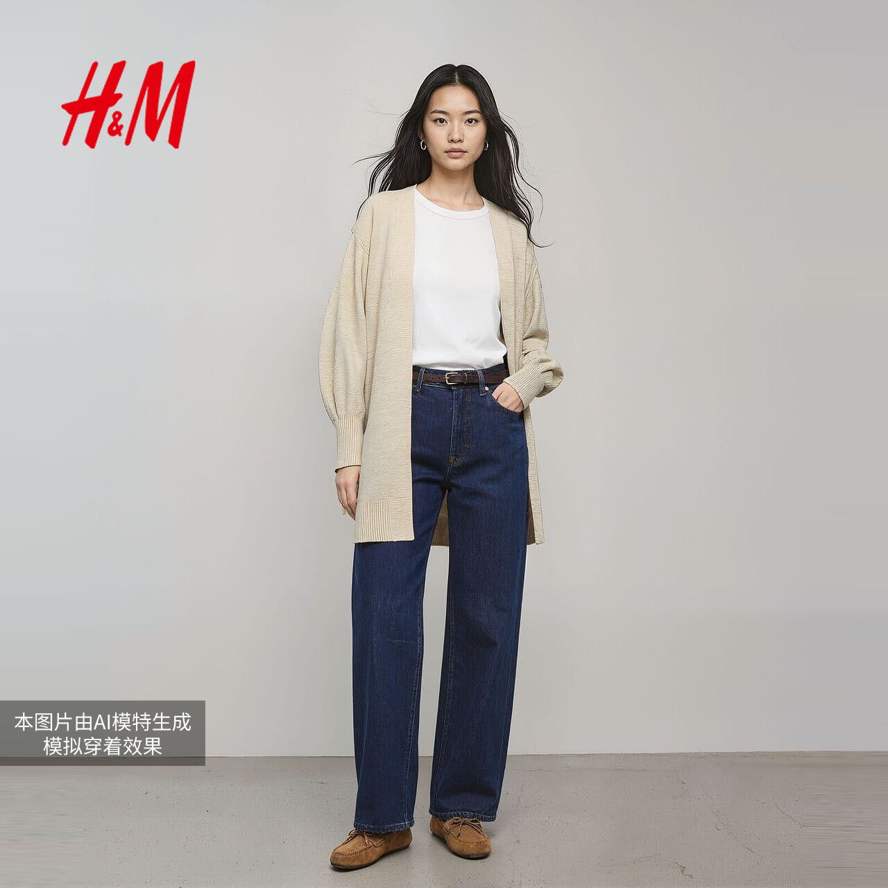 HM女装毛针织衫春季row系针织衫开衫羊毛混纺外套1000047