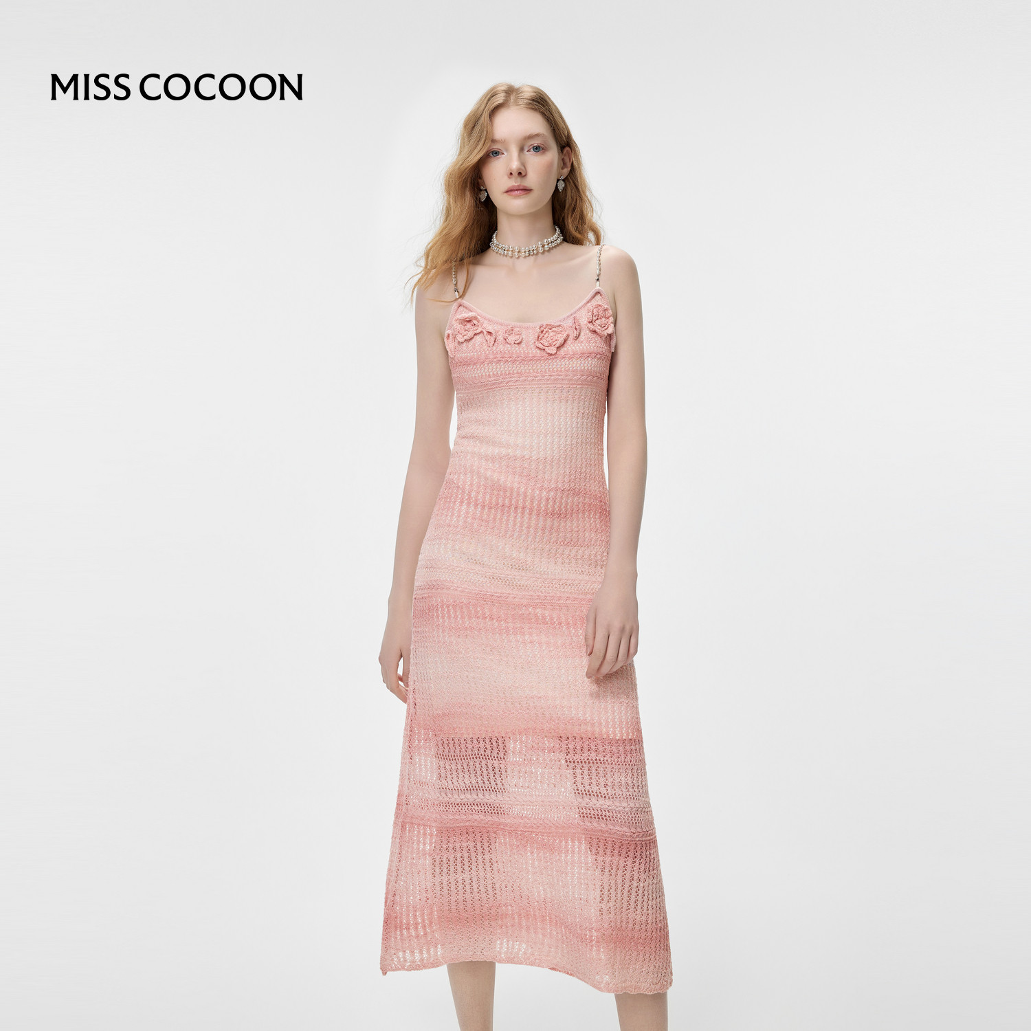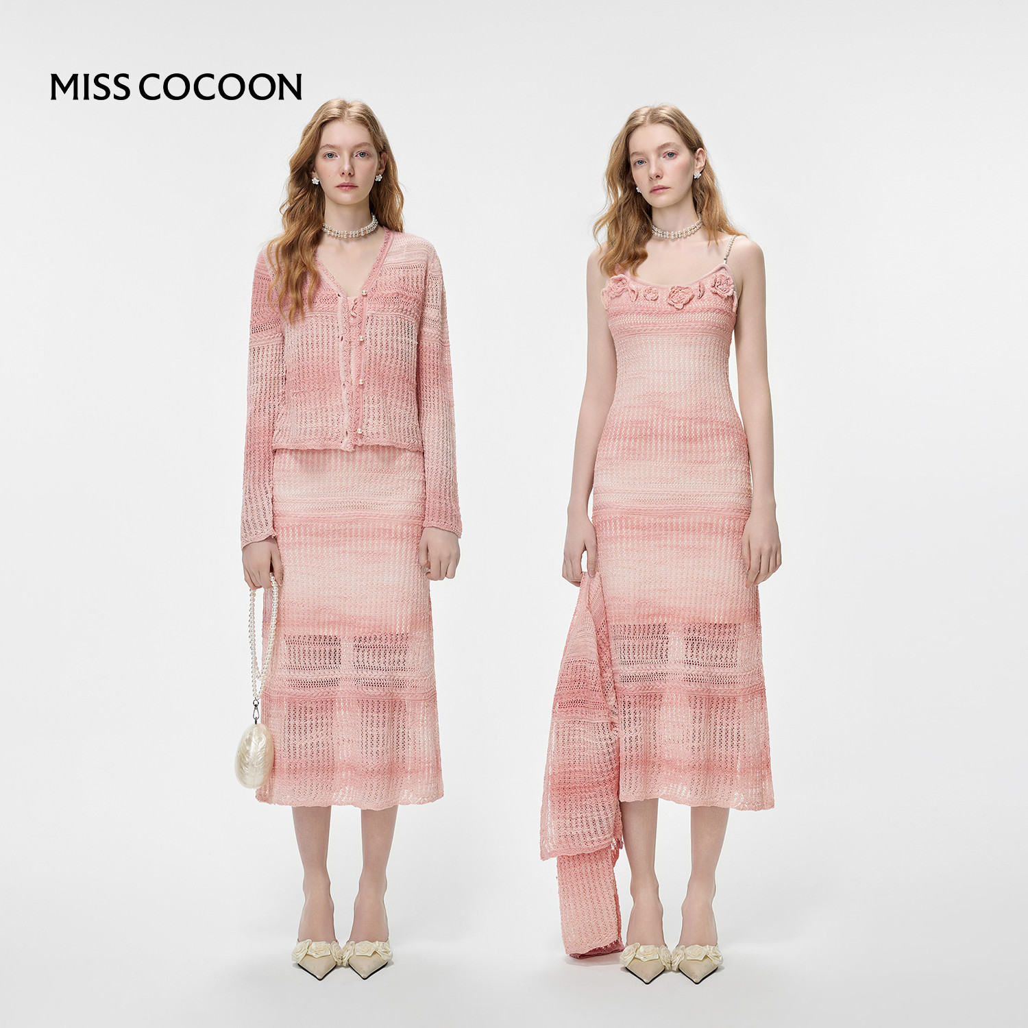 MISSCOCOON可可尼吊带连衣裙女2026春季新款粉白渐变色毛衫套装
