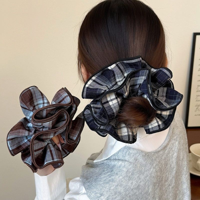 韩版格纹大肠发圈网红2025新款扎头发头花丸子头发绳高马尾头绳女
