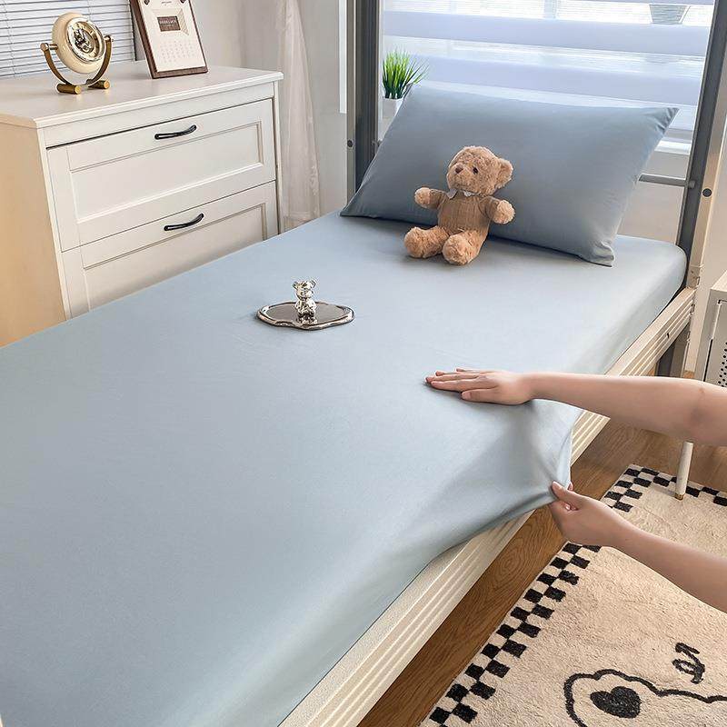 纯色学生宿舍床笠三件套40支长绒棉单人床罩家用席梦思床垫保护套