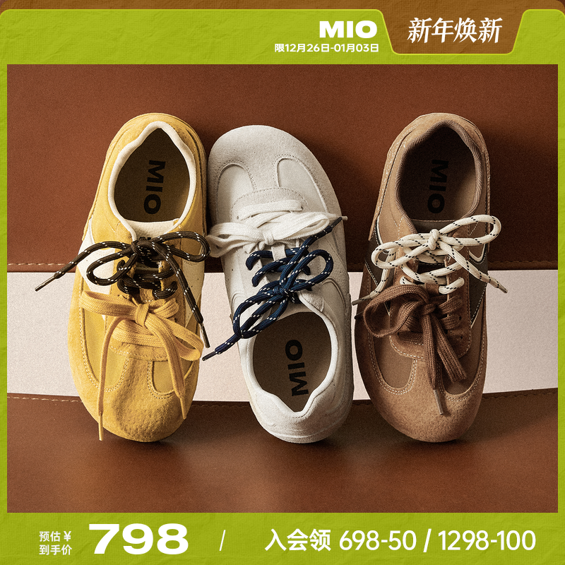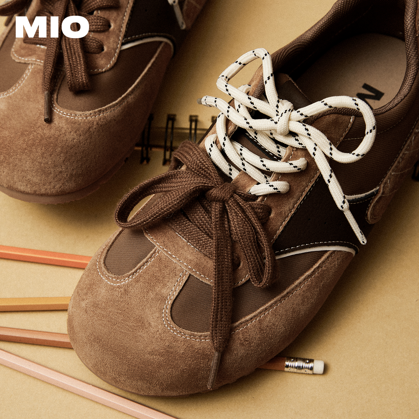 MIO米奥2025秋鹦鹉鞋芭蕾阿甘鞋德训鞋女复古板鞋圆头运动休闲鞋