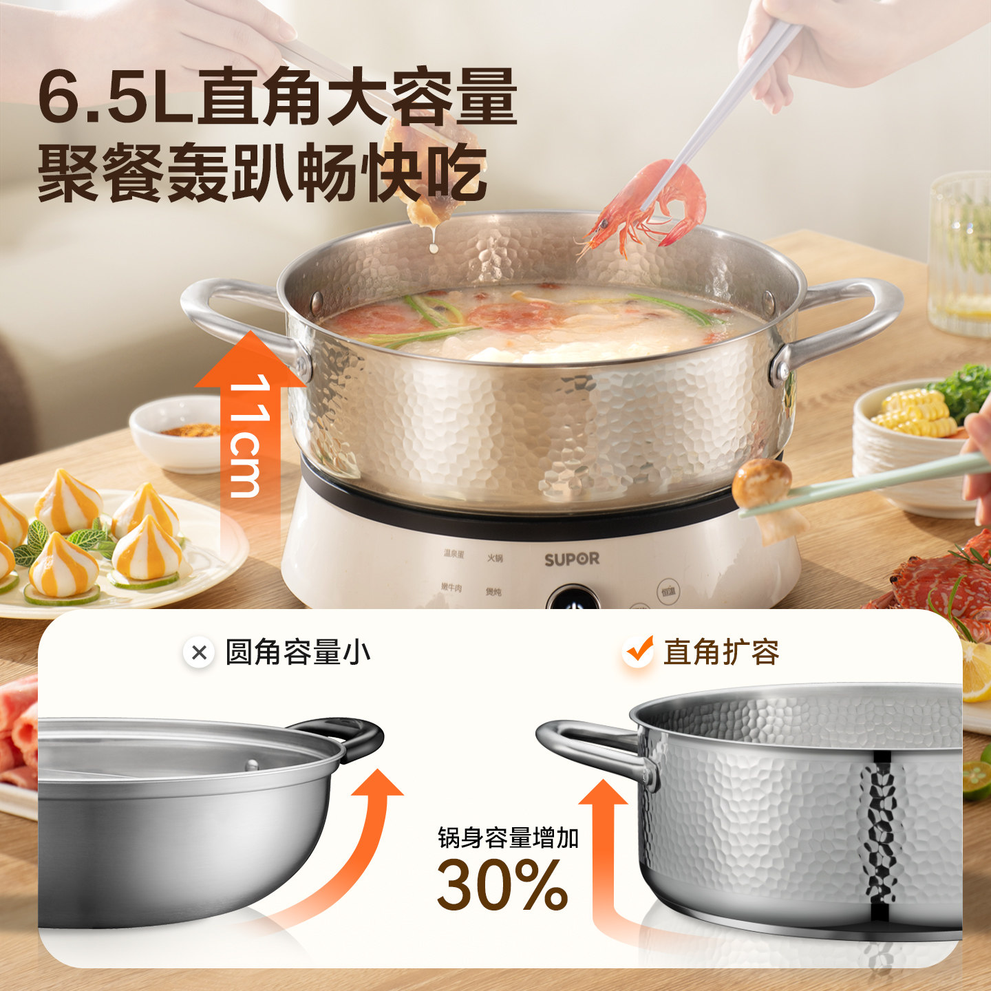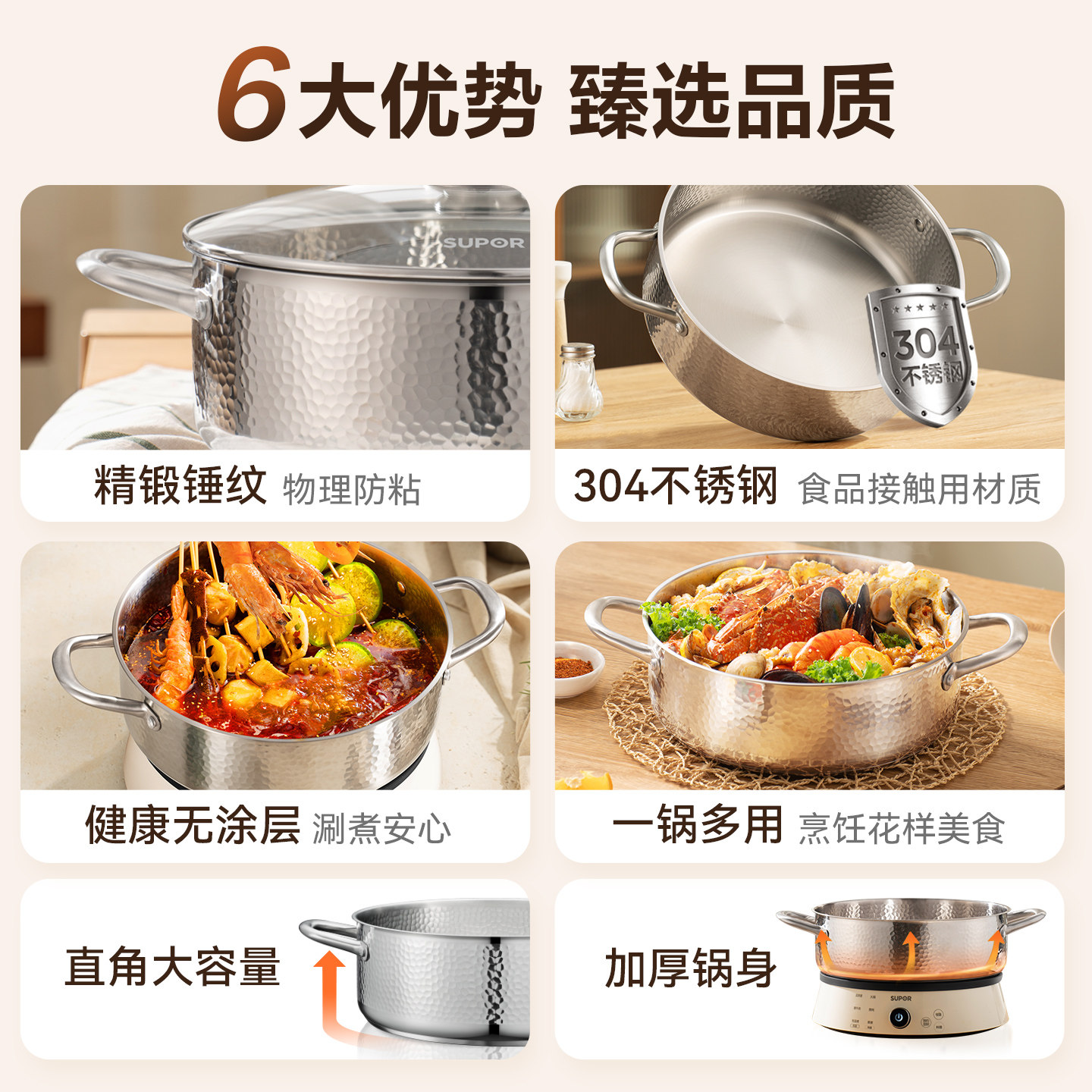 苏泊尔304不锈钢火锅锅具家用火锅燃磁通用加厚大容量多功能汤锅
