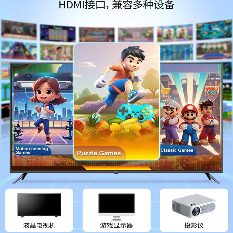 舞霸王体感游戏机AR摄像头肢体真人连电视2025新款家用双人无线手柄儿童益智游戏HDMI亲子互动娱乐投影仪
