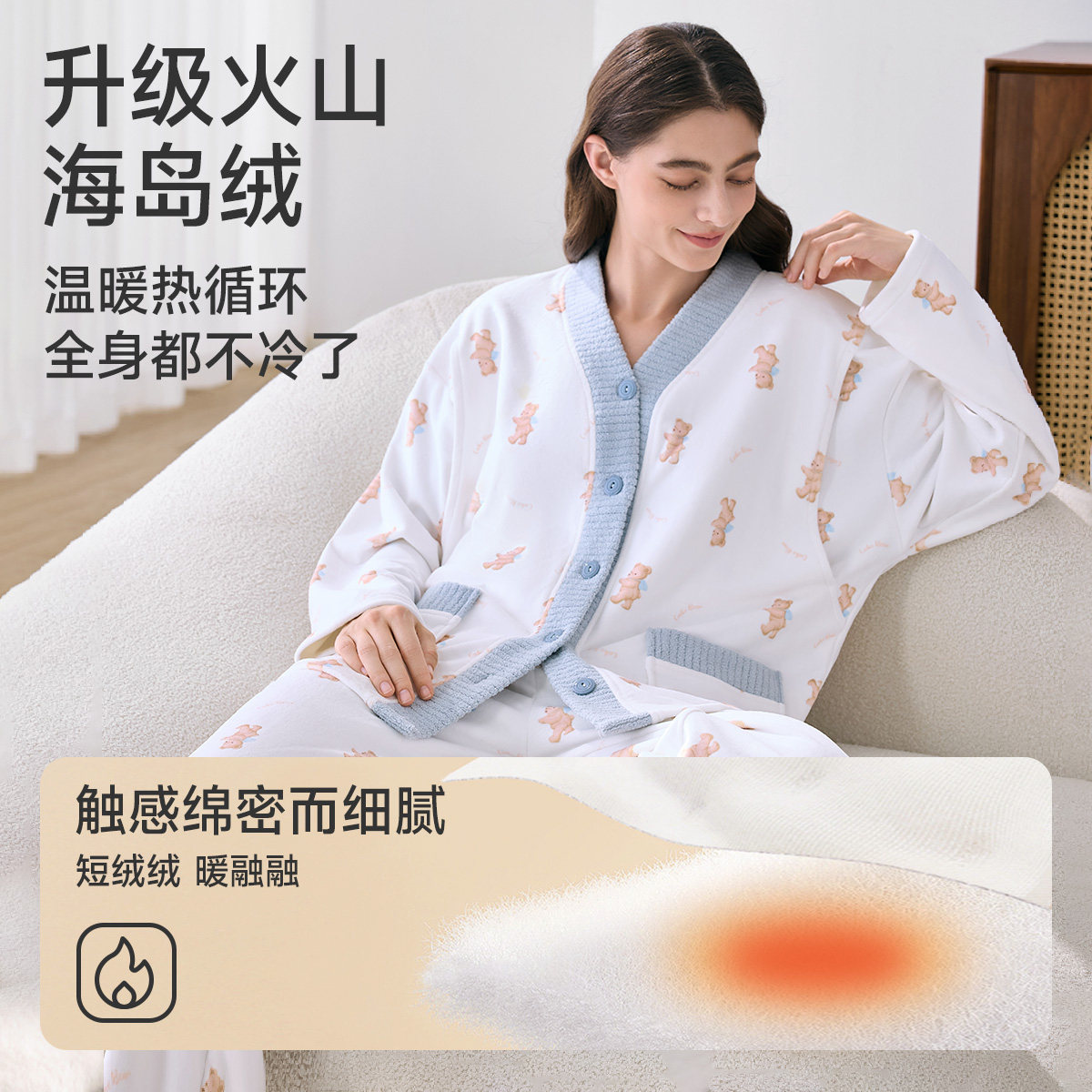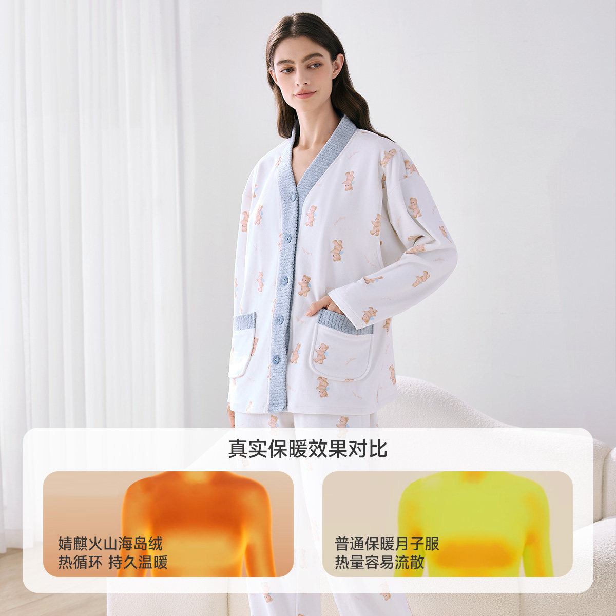 婧麒月子服12月份冬厚款加绒加厚产后孕妇睡衣哺乳产妇家居服套装