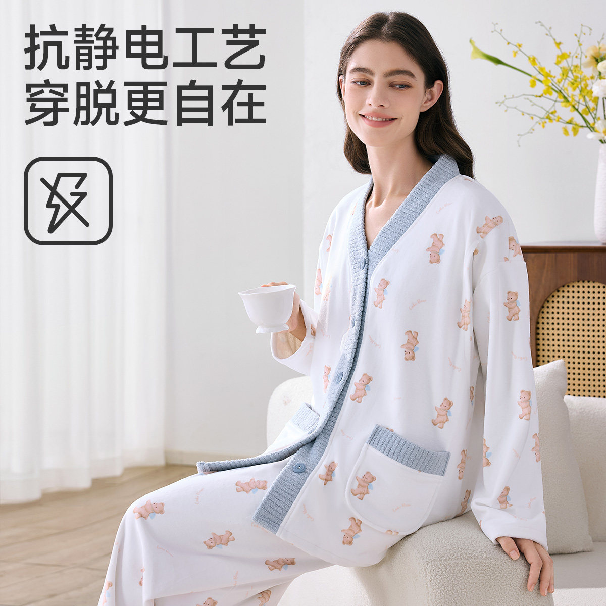 空气棉月子服秋冬季纯棉产后12月份全棉吸汗喂奶产妇哺乳孕妇睡衣