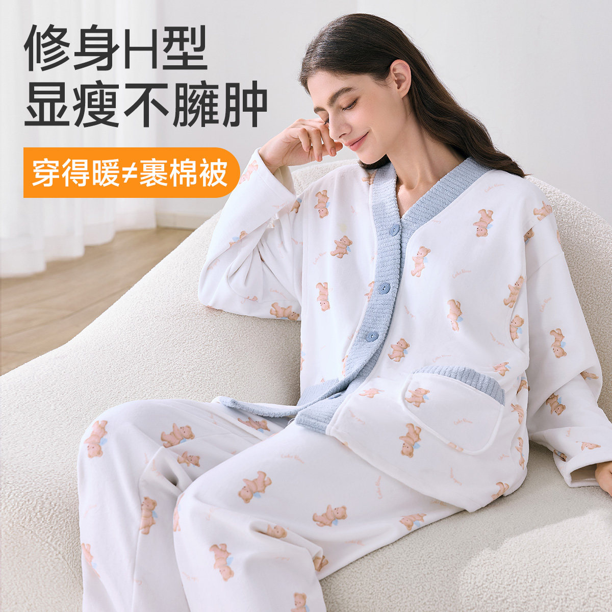 空气棉月子服秋冬产后纯棉加厚款产妇哺乳睡衣冬季孕期孕妇家居服
