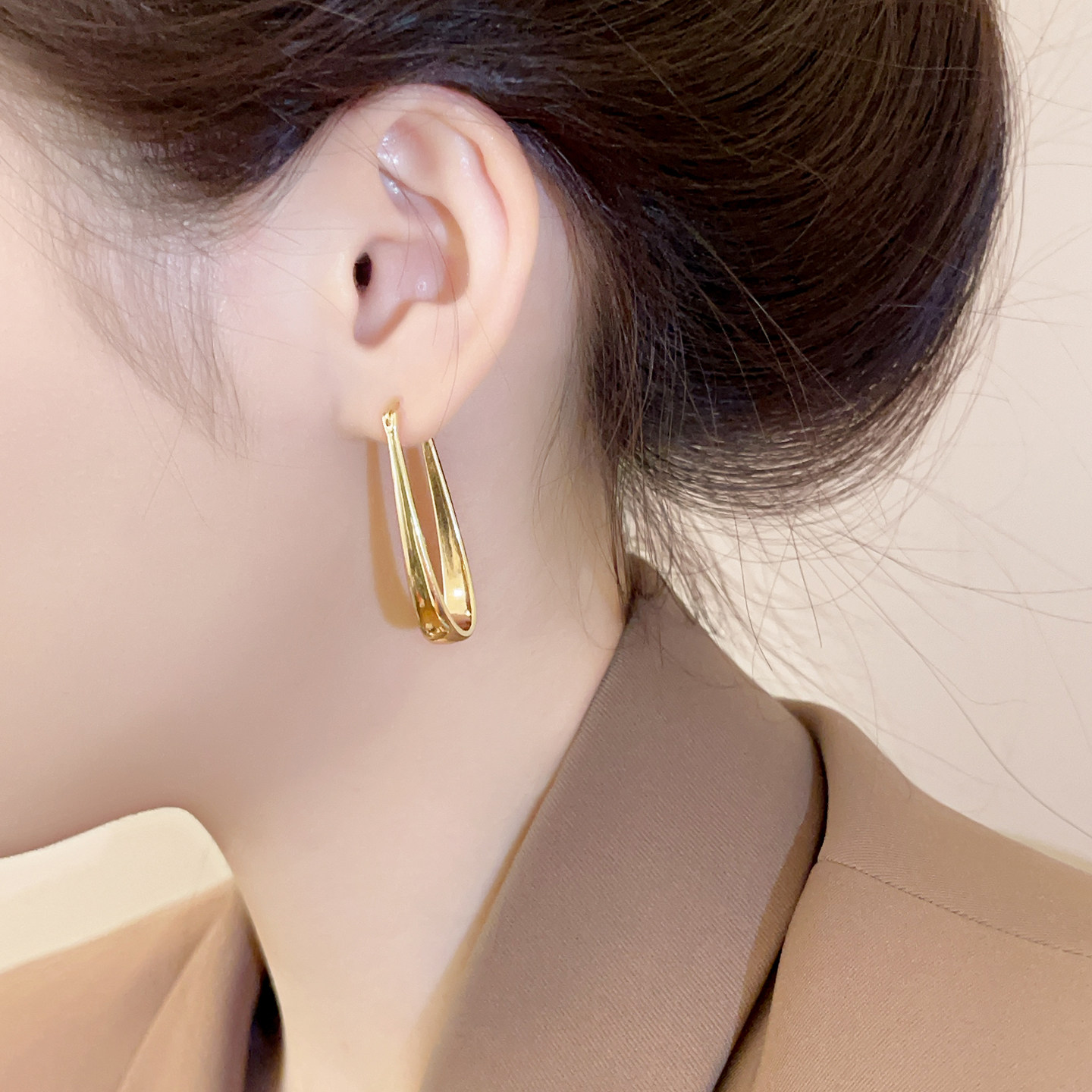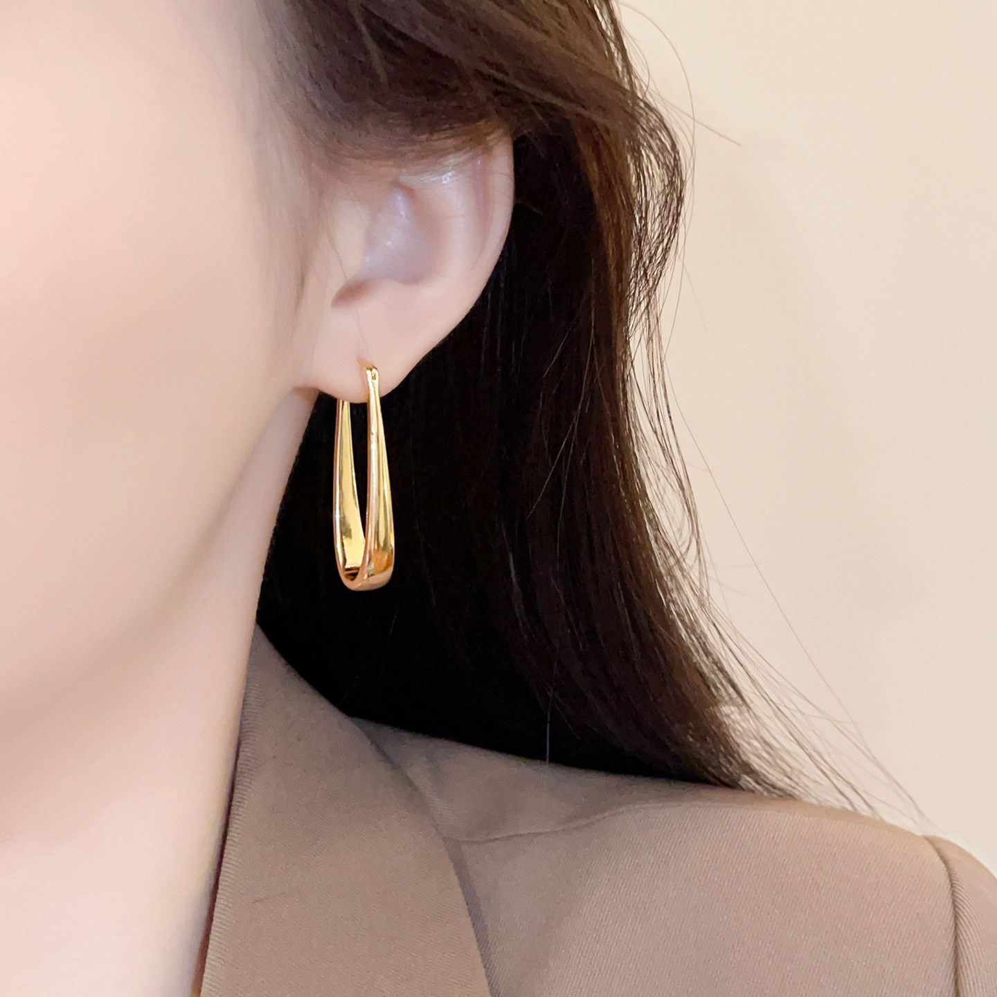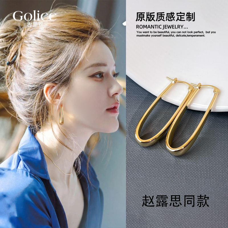 金色拉丝几何耳环2025新款爆款高级感轻奢小众气质耳扣女秋冬耳饰