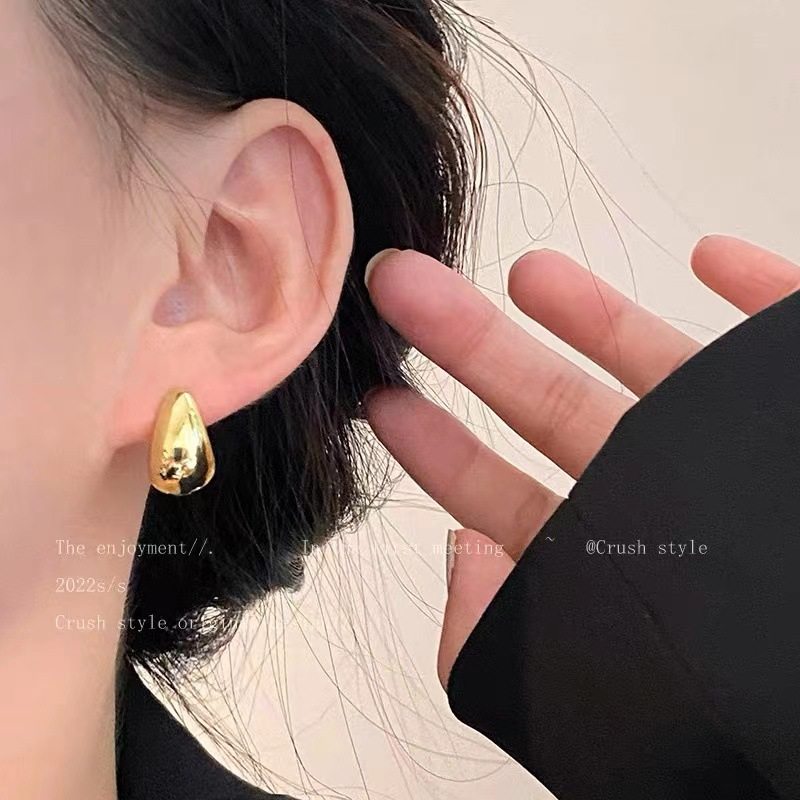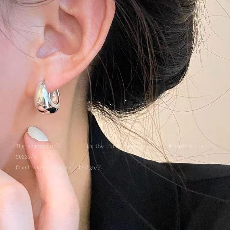 欧美风~圆弧金属素圈耳圈女ins简约气质耳环2022年新款潮通勤耳饰