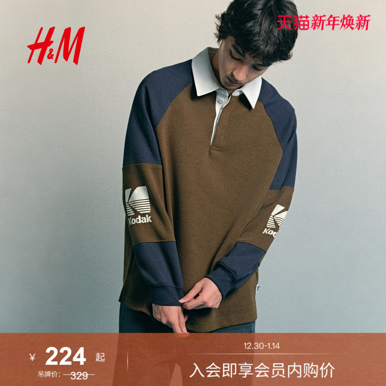 HM男装卫衣2025年冬季新款时尚宽松版型橄榄球衫1315413