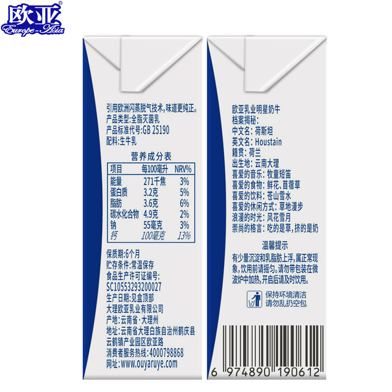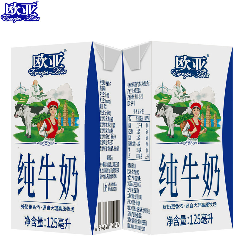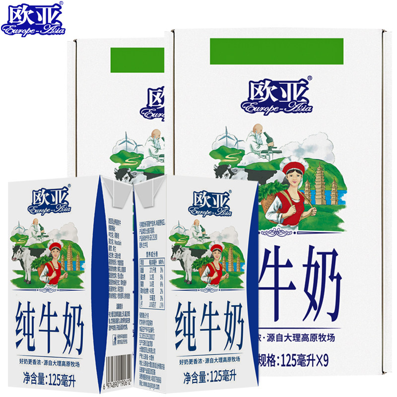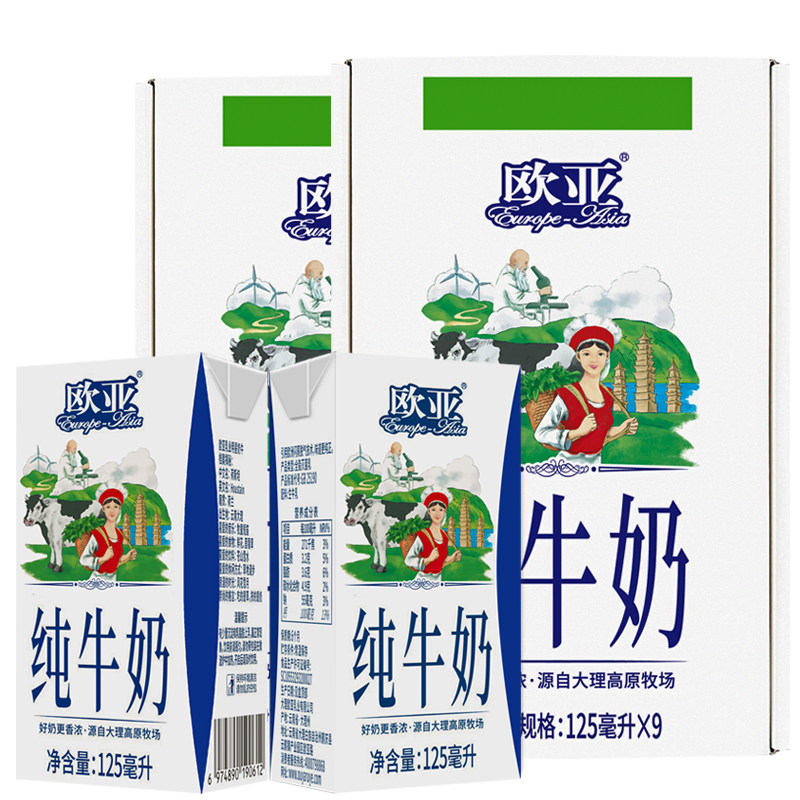 工厂直发欧亚纯牛奶125g*9盒*2箱儿童全脂小盒装纯牛奶新鲜日期
