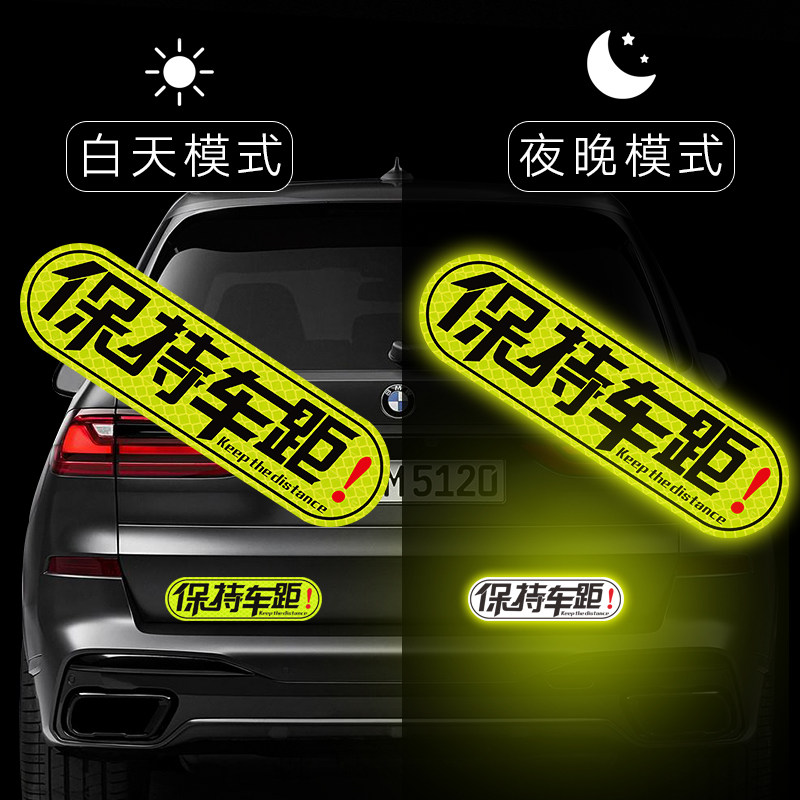 保持车距车贴夜间警示注意尾划痕个性创意反光车贴纸装饰新手贴