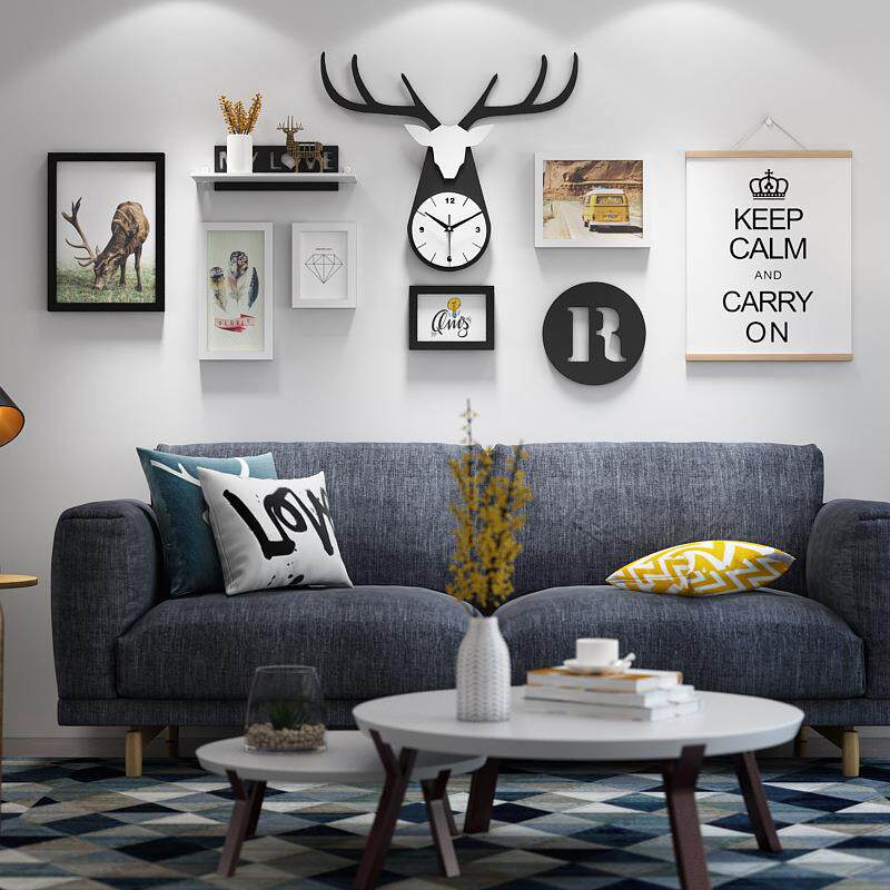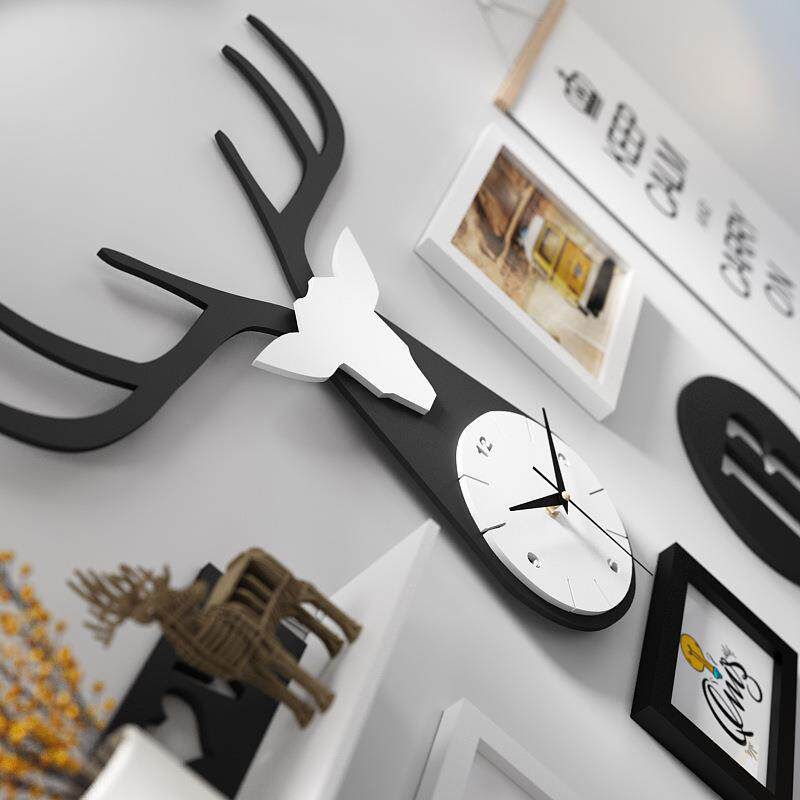 实木_7593_现代照片墙优惠摇摆钟表装饰画北欧相框能换相片真钟表