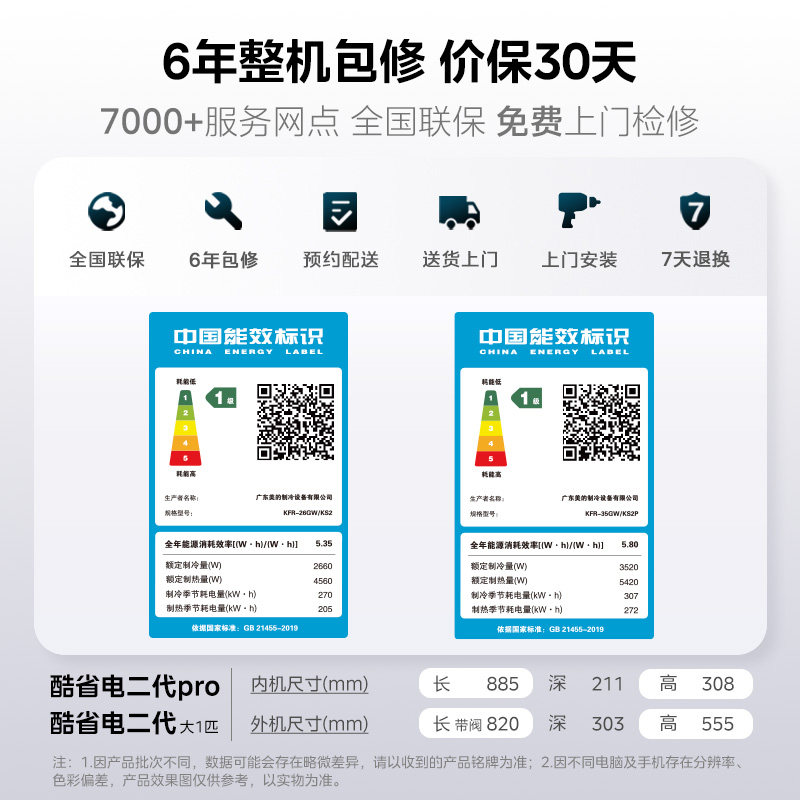 美的酷省电2代pro空调官方正品一级冷暖变频卧室大1.5匹挂机