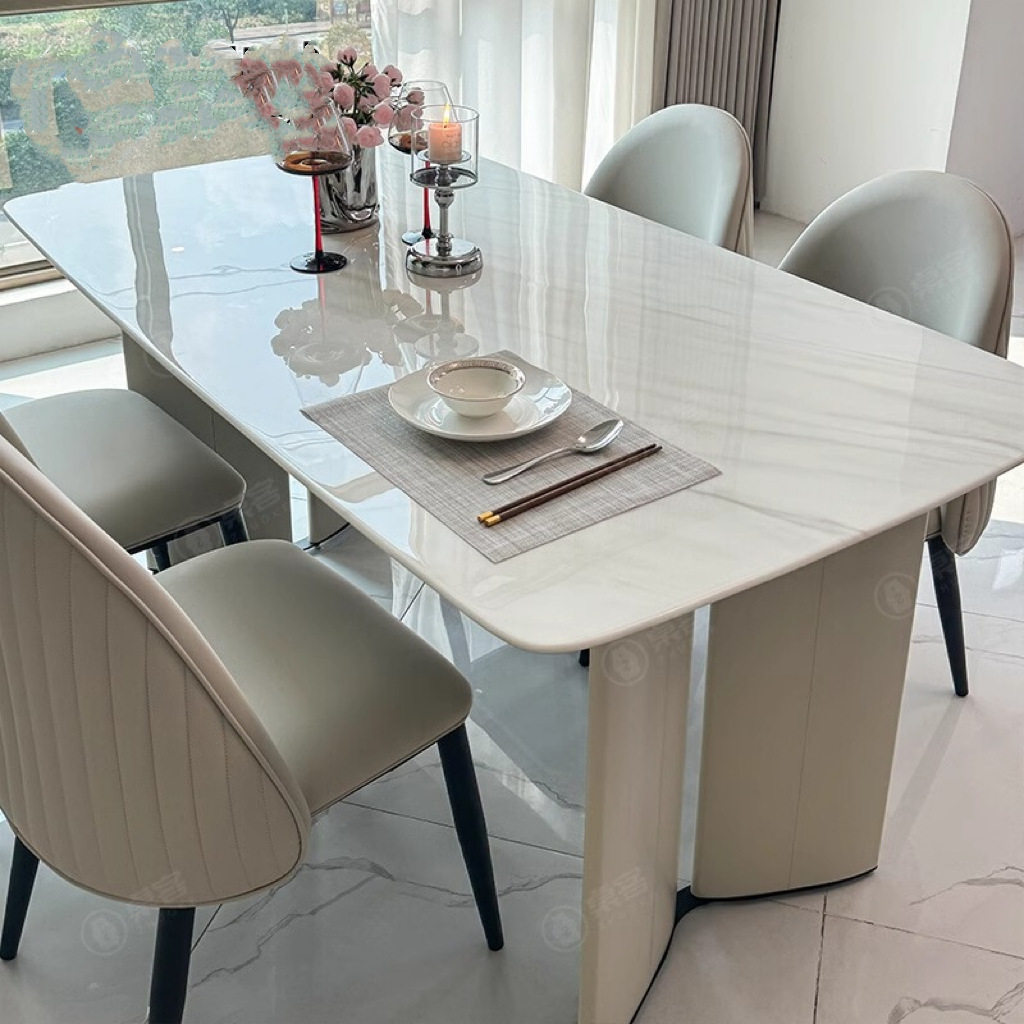 奶油风微晶石餐桌法式轻奢美式高级感天然超晶石大理石现代简约桌