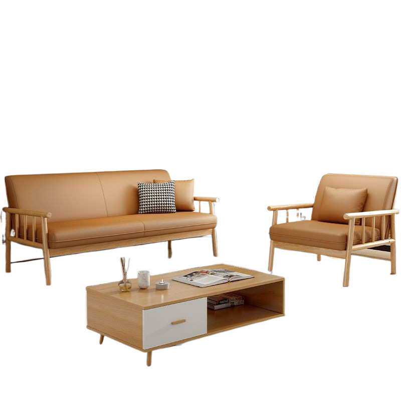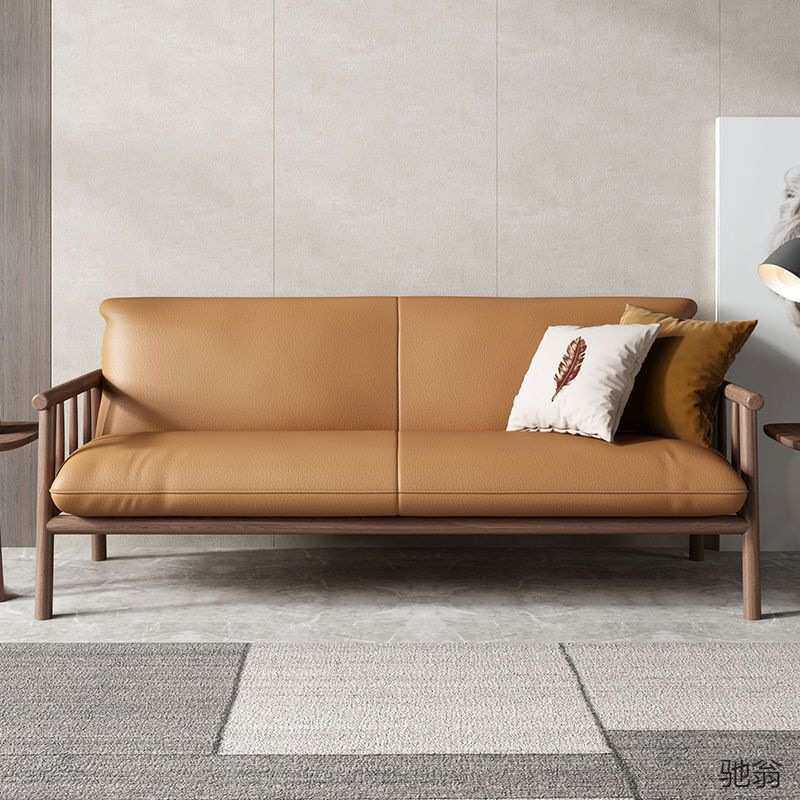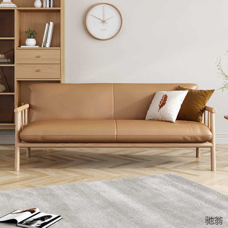 皮艺沙发小户型客厅全实木北欧橡胶木简约现代直排双三人沙发