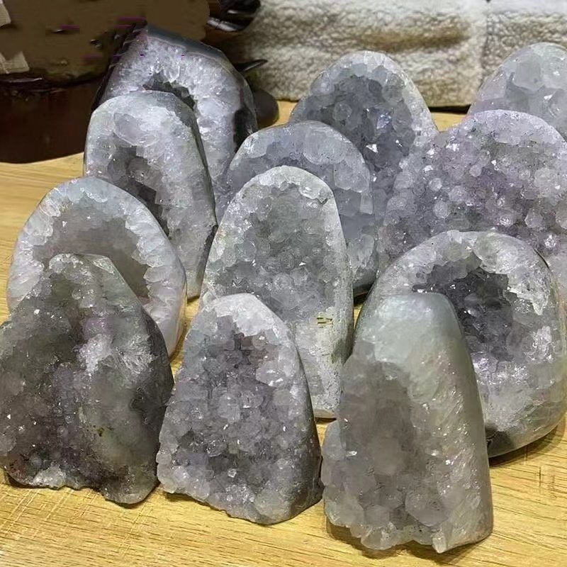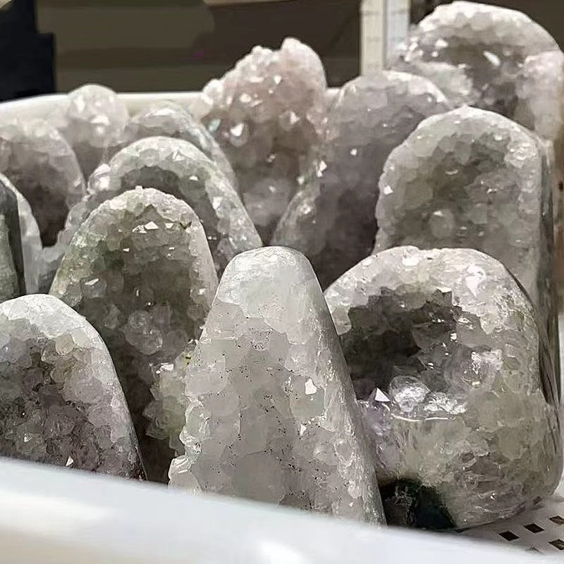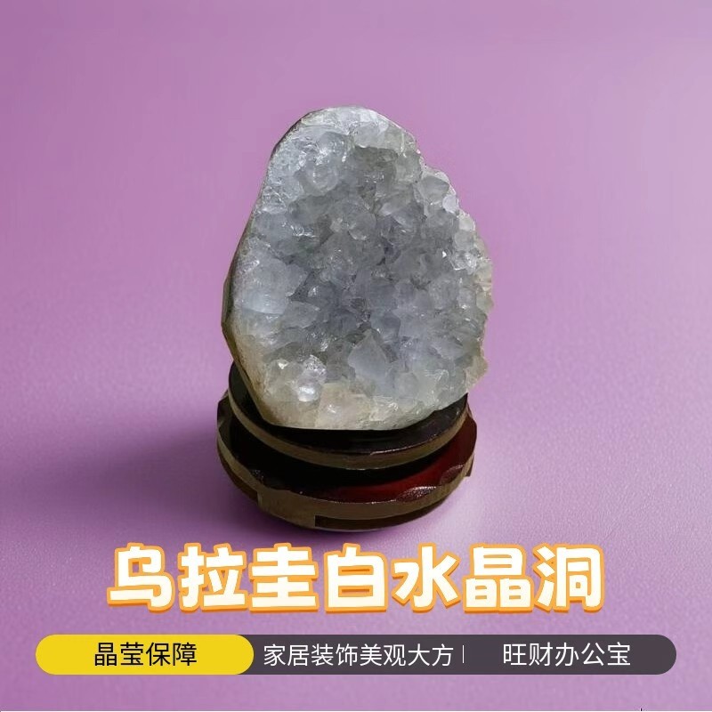 天然白水晶洞摆件乌拉圭晶簇晶镇聚宝盆消磁石客厅玄关办公室饰品