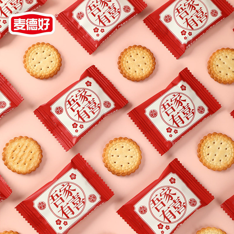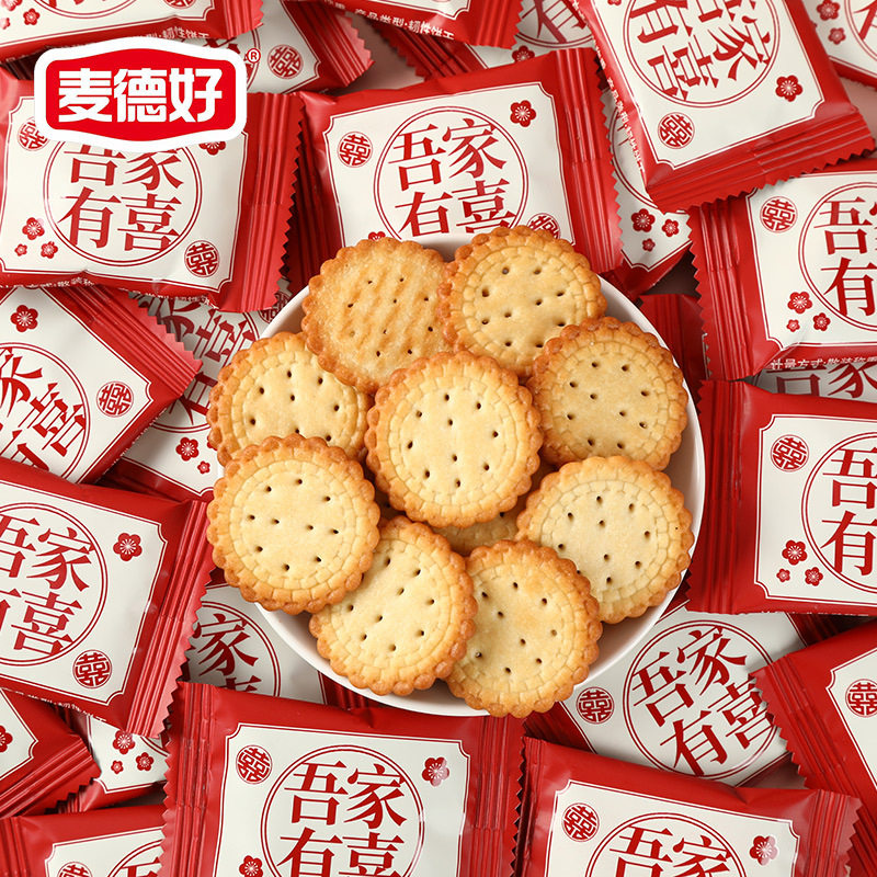 麦德好喜饼吾家有喜小圆饼干喜糖儿童零食咸蛋黄饼干结婚喜饼
