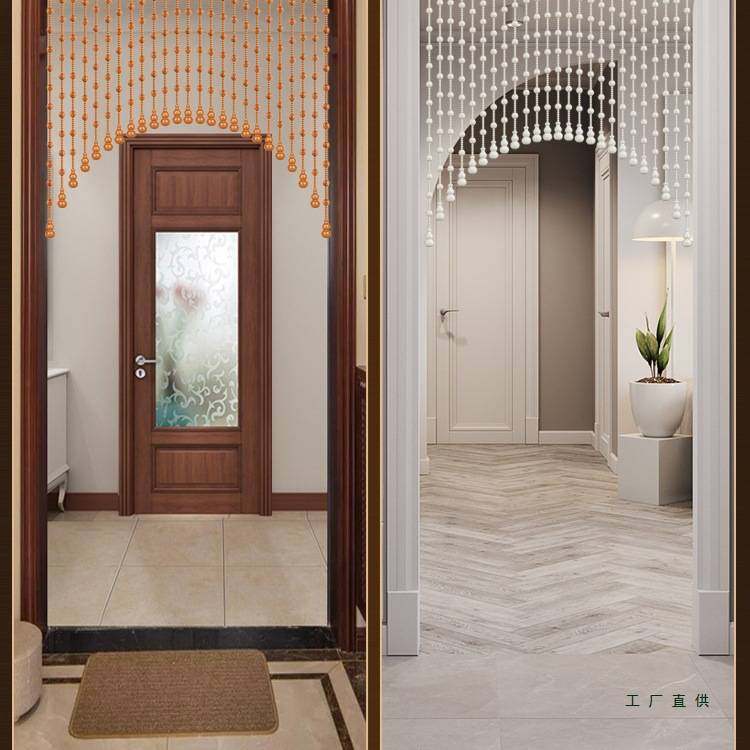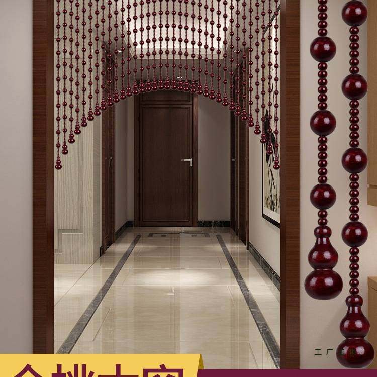 全桃木珠帘新款家用玄关过道隔断帘卧室客厅装饰拱形门帘子免打孔
