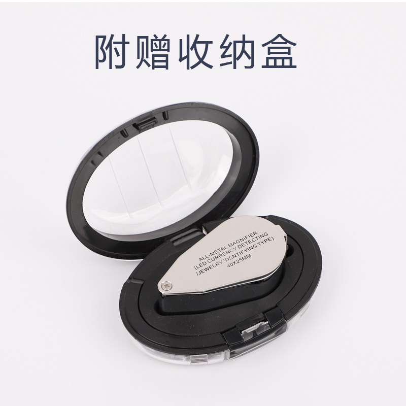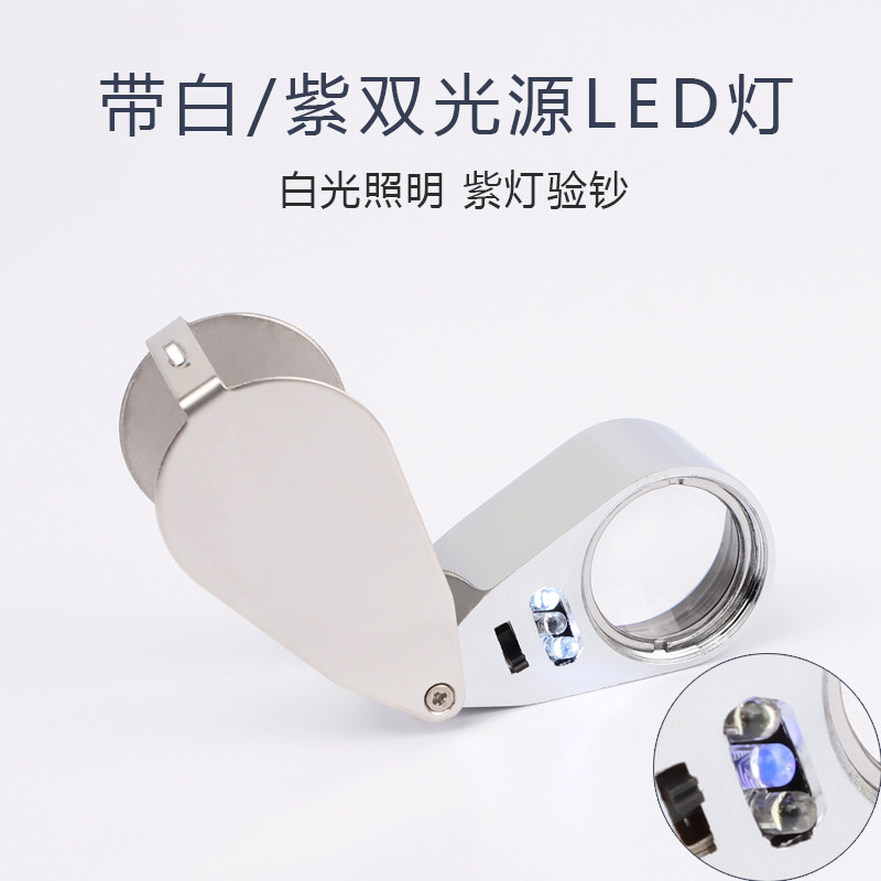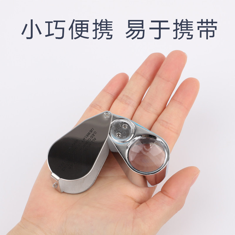 圣创40倍放大镜带LED灯手持文玩钻石腰码玉石翡翠银元古董鉴定邮票字画验钞维修高倍高清100便携式显微镜1000