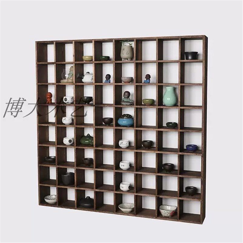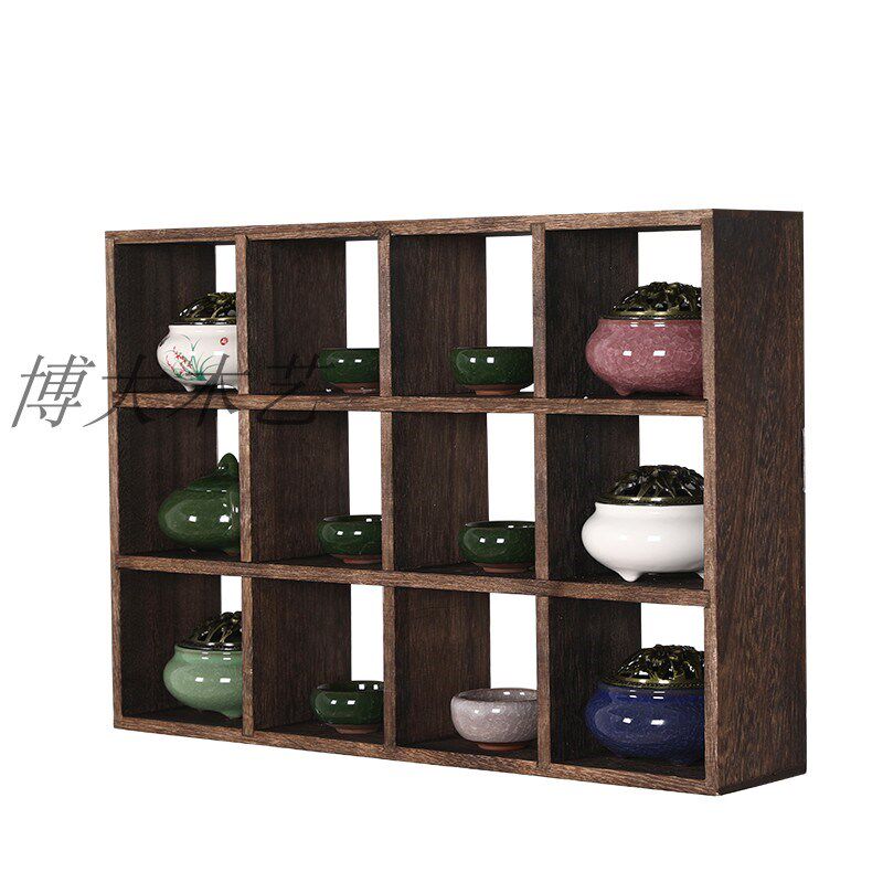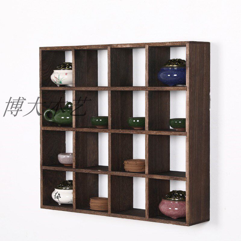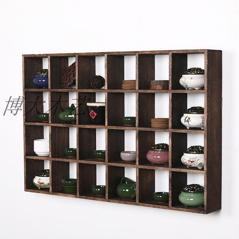 博古架实木中式壁挂墙上多宝阁复古茶道简约现代古董展示茶具收纳