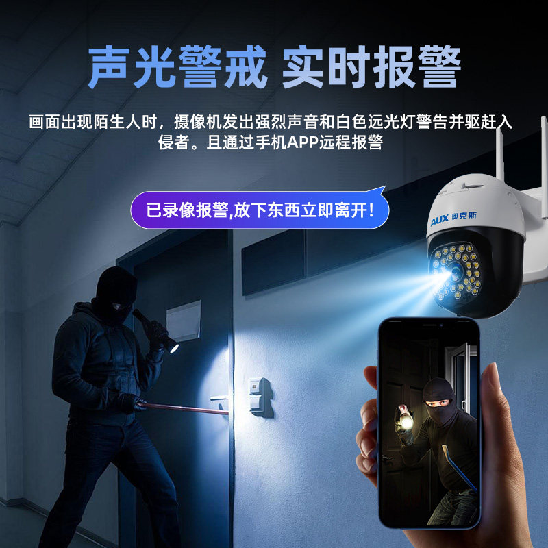 奥克斯摄像头监控器360度无死角室外家用远程手机全景高清夜视4G