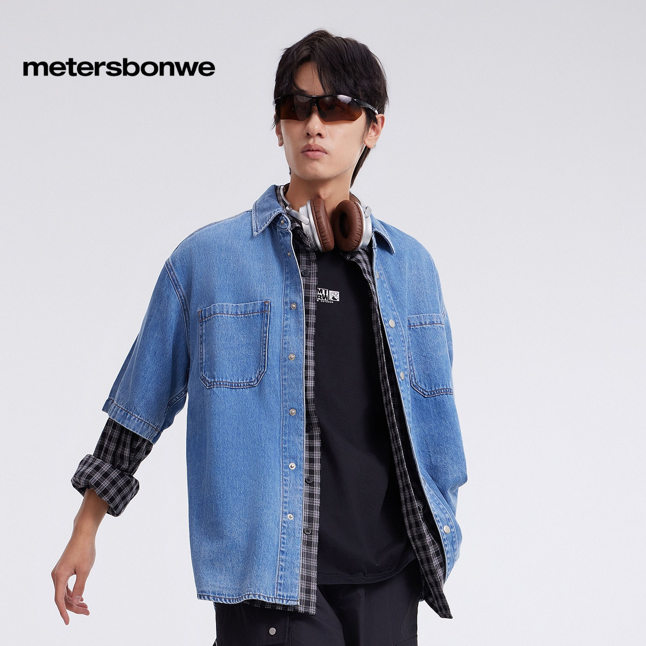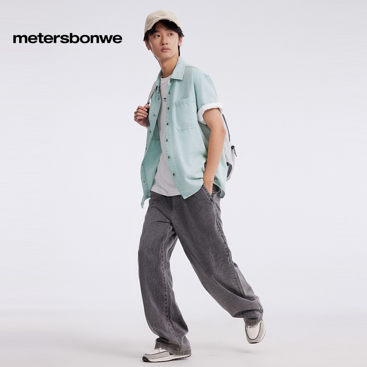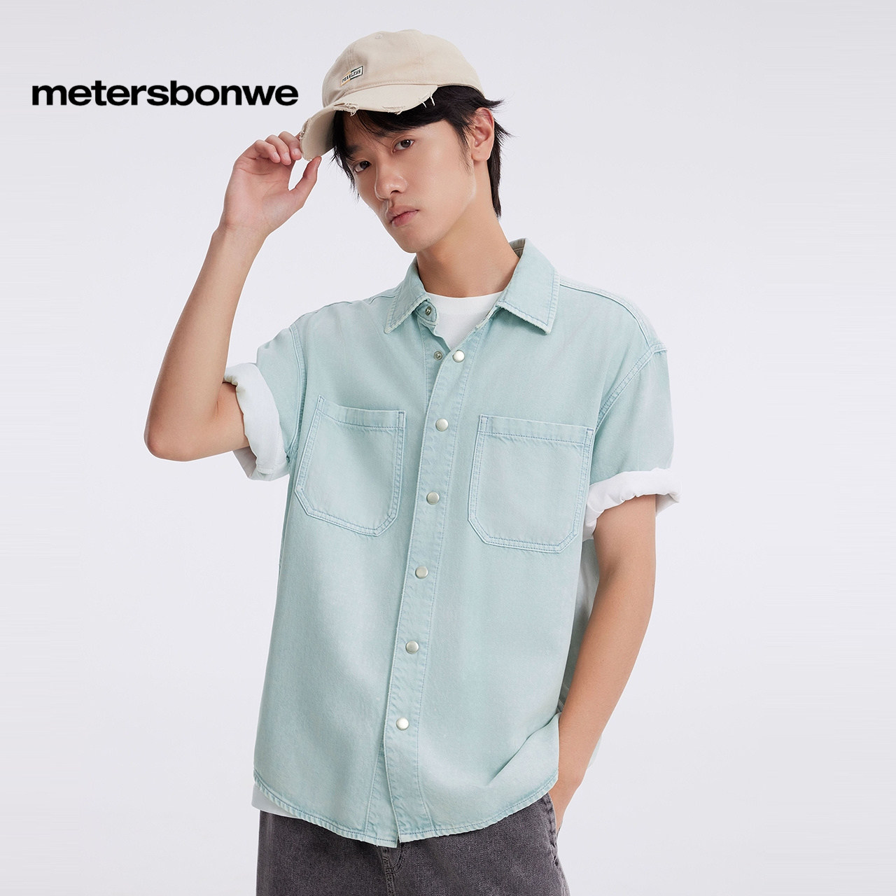 美特斯邦威牛仔衬衫男2025春季新款户外宽松舒适短袖衬衫质感上衣