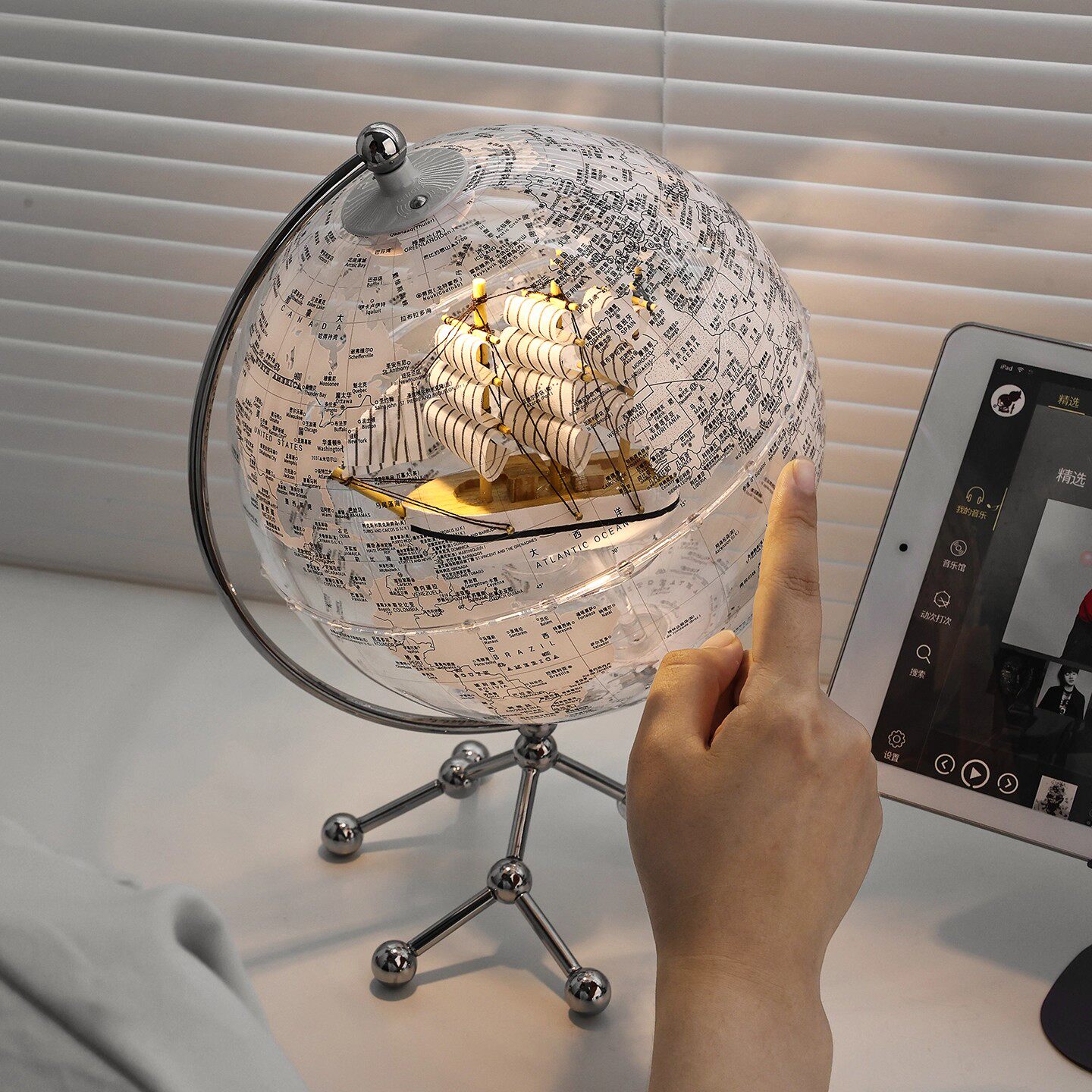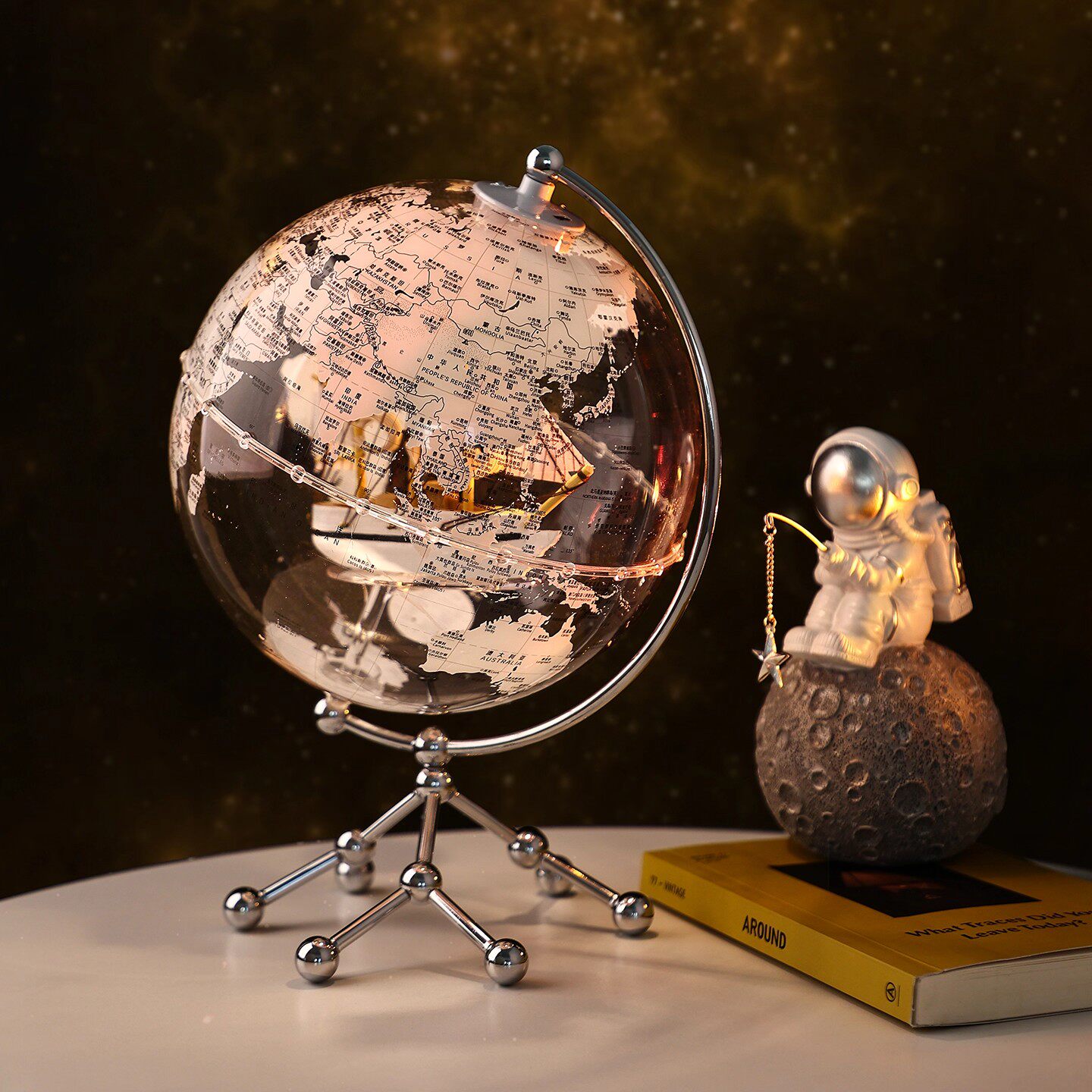 2026新款透明地球仪摆件轻奢高档高级客厅办公室酒柜桌面摆设卧室可发光地球仪小夜灯台灯家居乔迁装饰品礼物