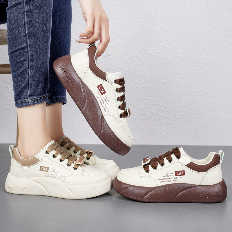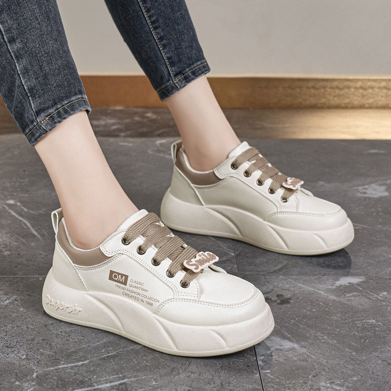 米白色原创小众厚底面包鞋女百搭运动休闲板鞋学生小白鞋2025新款