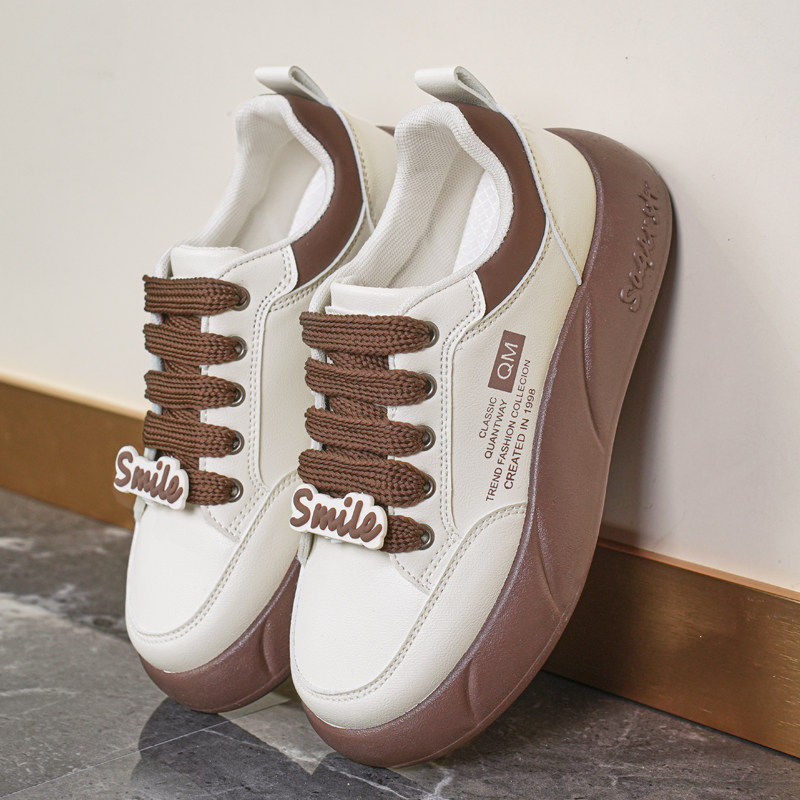 【明星同款】Wander around 复古棕色厚底增高休闲板鞋男女同款