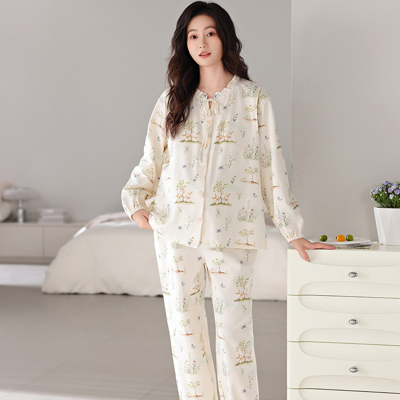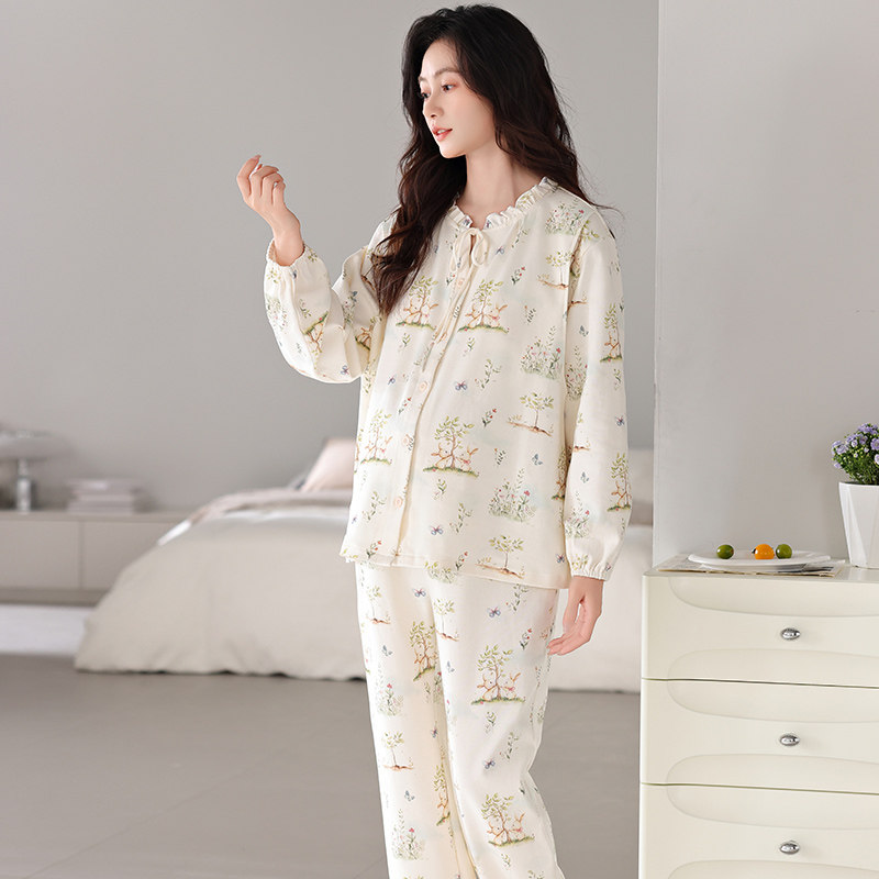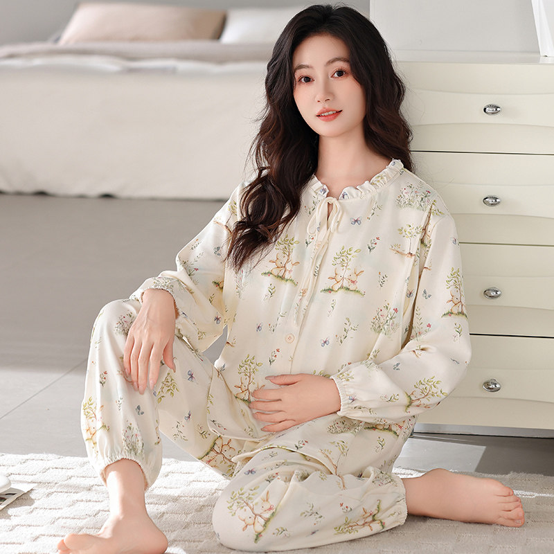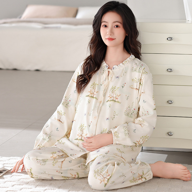 婧麒云慕丝月子服产后秋冬季纯哺乳家居服棉怀孕产妇孕妇睡衣套装