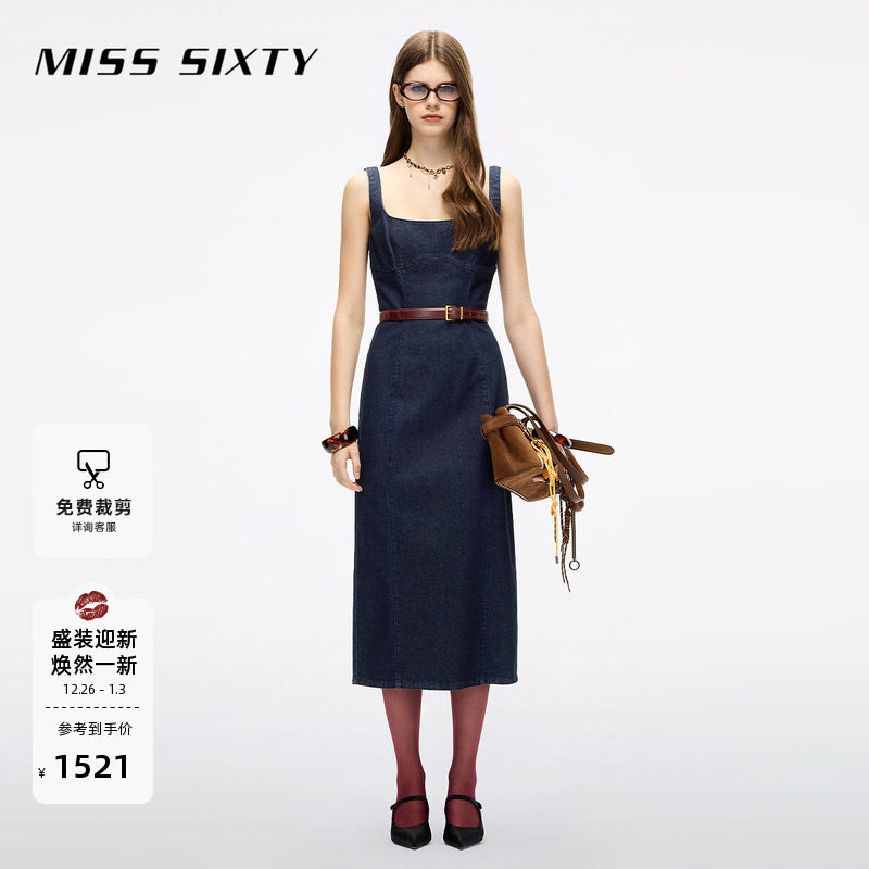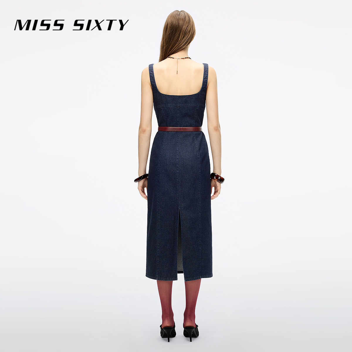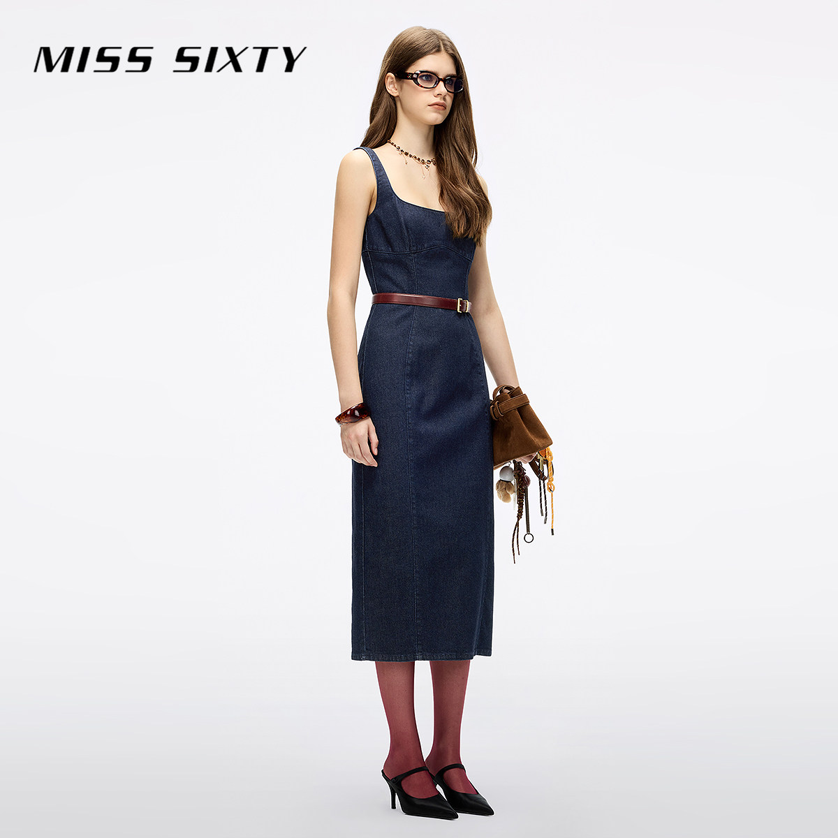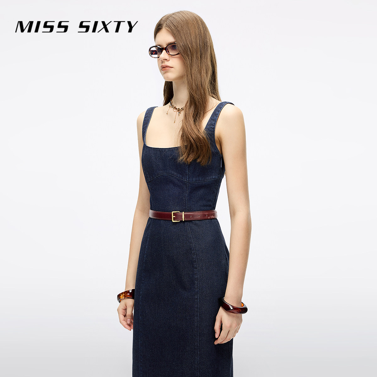 【进口牛仔面料】Miss Sixty2025秋季新款牛仔连衣裙女吊带中长裙