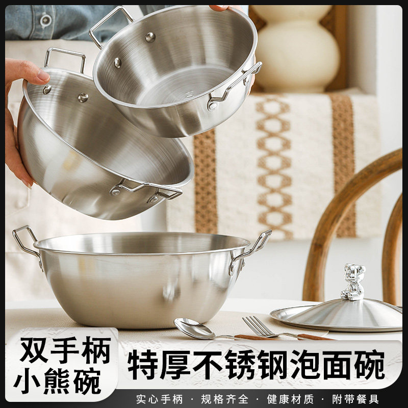 304不锈钢泡面碗日式双耳带盖汤碗大容量学生宿舍麻辣烫专用餐具